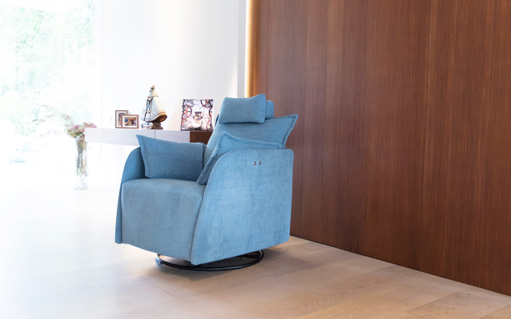 Nadia - это новое кресло-качалка и электрическое кресло. Его эксклюзивный дизайн можно комбинировать с любой другой моделью, особенно с моделью Nadine. Поставляется с регулируемым по высоте подголовником. Механизм кресла такой же, как и в Moonrise, но эта модель на 15 см уже.
