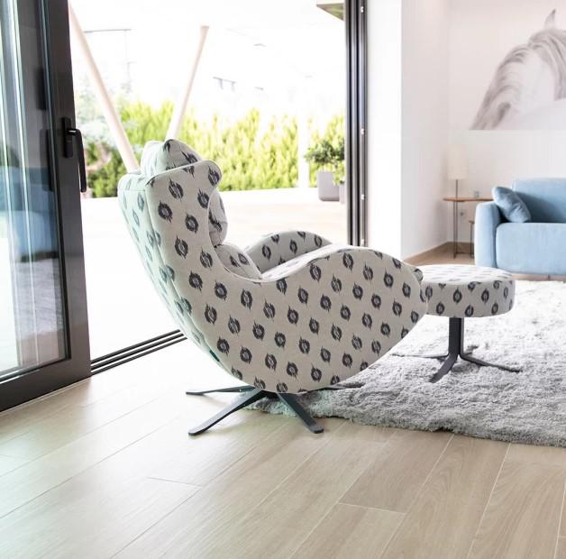 Lenny, пожалуй, наш самый знаковый дизайн, умная комбинация вогнутых и выпуклых кривых, которые создают уникальное и неповторимое кресло. Его сиденье и подушки спинки предлагают невероятный комфорт. Основание представляет собой поворотный и качающийся механизм. Круглая подставка для ног - идеальный аксессуар, чтобы сделать Lenny удивительно комфортным предметом.
