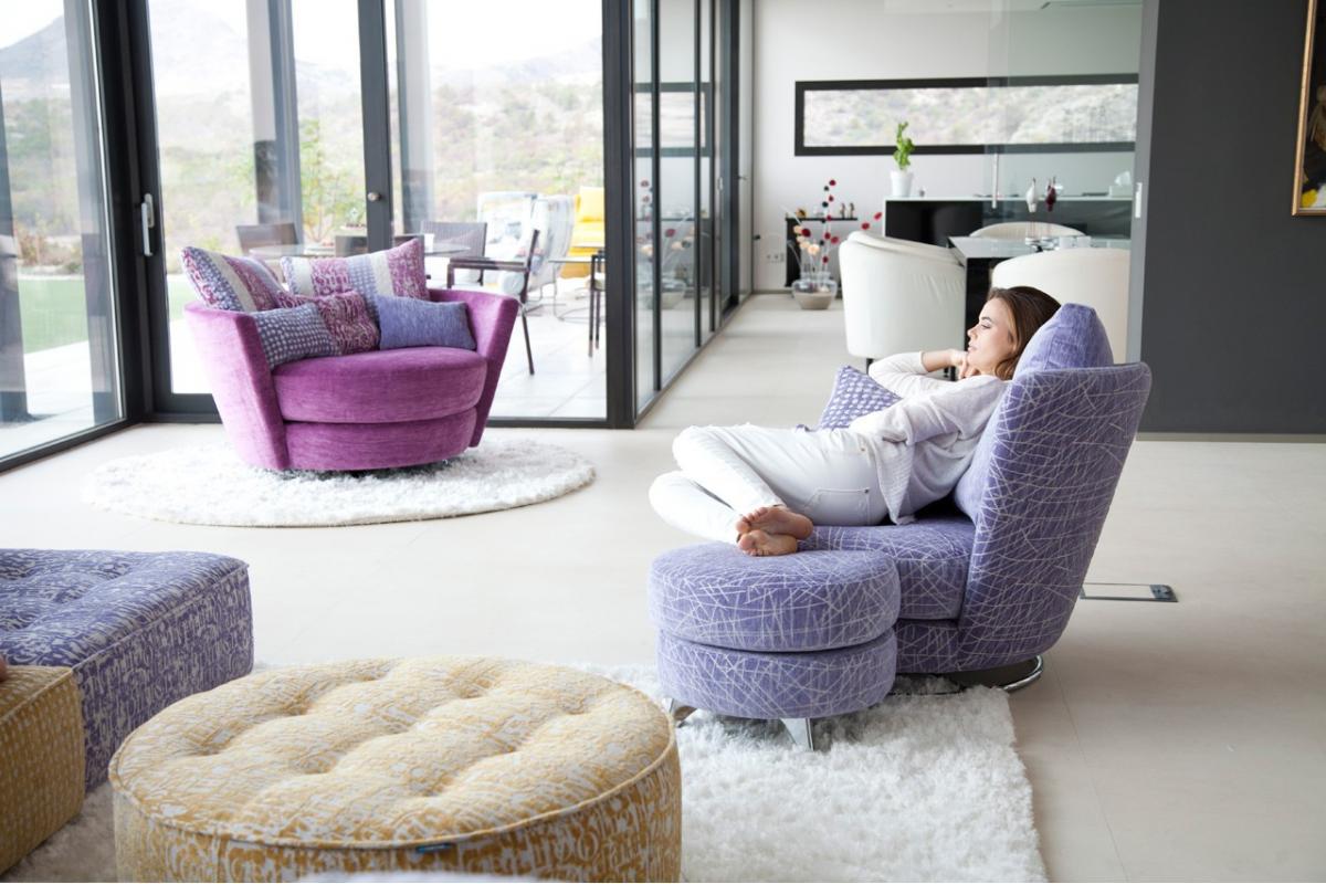 Roxane - это кресло с особым дизайном, где вы будете наслаждаться незабываемыми моментами. Его изогнутая спинка создает мирную и спокойную атмосферу, которая позволяет вам наслаждаться отдыхом и забыть обо всем остальном. Поворотное основание и подставка для ног обеспечивают большой комфорт. Подставку для ног можно адаптировать к креслу спереди или под углом, обеспечивая удивительный комфорт во всех положениях. Кресло доступно с поворотным основанием или с металлическими или деревянными ножками.