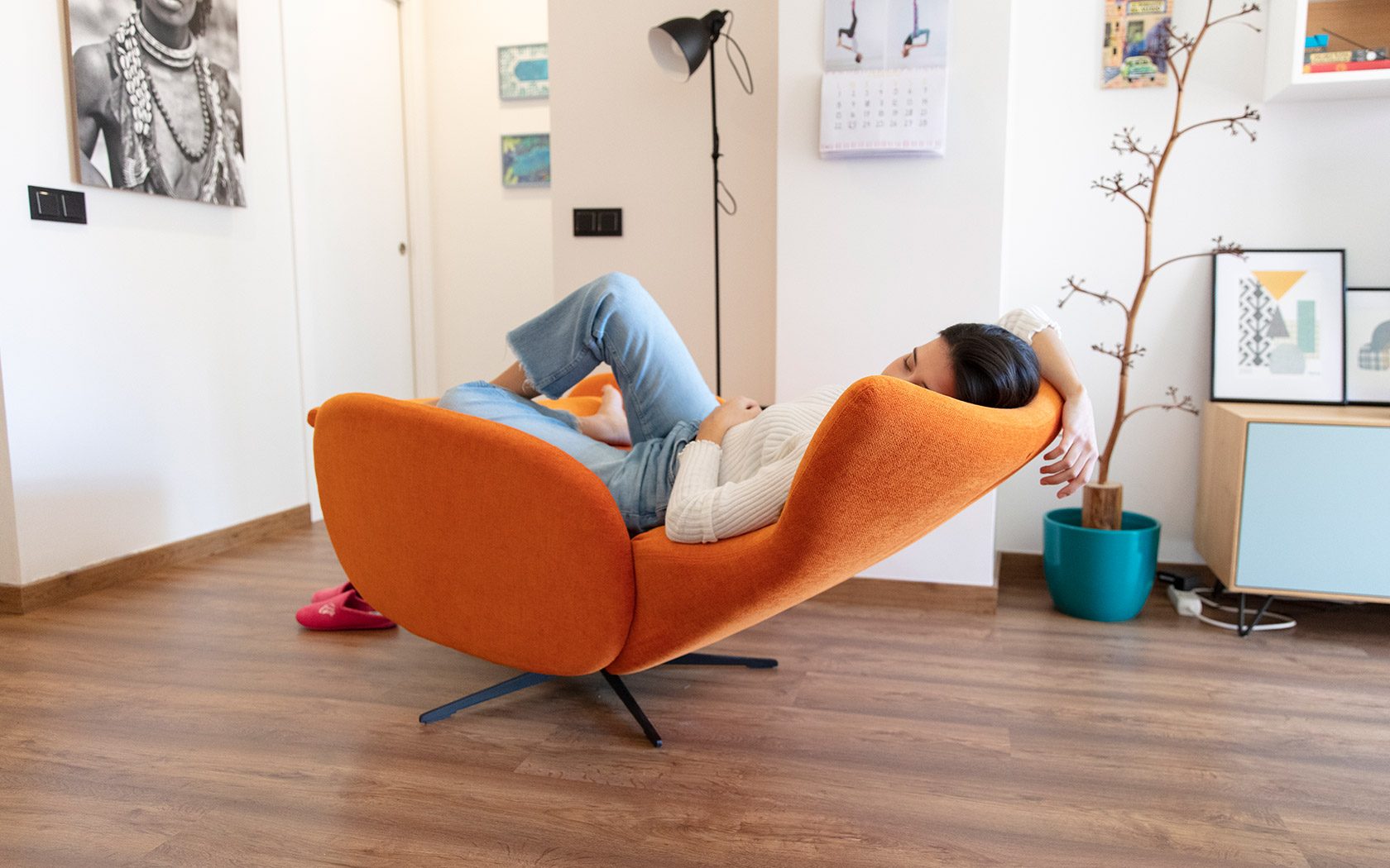 Креслу Mondrian суждено стать новым символическим произведением Fama. Нашей целью было создать очень легкое кресло, но при этом эргономично адаптирующееся к формам тела. Самое главное, что он предлагает большой комфорт и, прежде всего, в закрытом состоянии он настолько легкий, что никто не скажет, что он расслабляет. Механизм открывания можно выбрать с электроприводом или вручную. Он предлагает два положения: первое, немного более вертикальное, для просмотра телевизора, чтения и т. д., а второе — полностью лежа, с ногами выше уровня сердца, что благоприятствует положению, здоровому для сердца. Самое главное, что он предлагает большой комфорт и, прежде всего, в закрытом состоянии он настолько легкий, что никто не скажет, что он расслабляет. Сейчас мы работаем над разработкой моторизованной версии