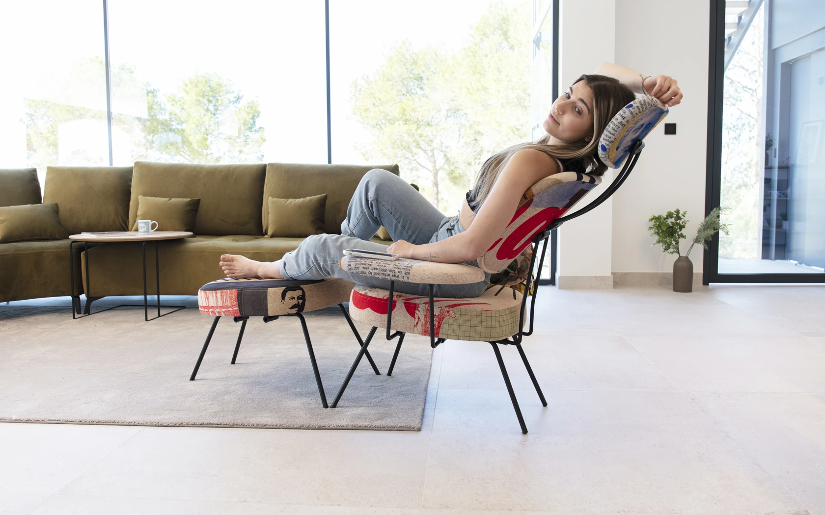Fourmi — наше шарнирное и многофункциональное кресло с регулируемой спинкой и системой подголовников. Из общей основы с четырьмя металлическими ножками, в зависимости от количества используемых элементов, можно создать пуф, дополнительный стул или кресло или даже кресло для отдыха с подголовником в комплекте. Особое внимание следует уделить шарнирной системе всех частей спинки, которая позволяет каждому элементу естественным образом адаптироваться к различным положениям, которые мы можем принять. Подлокотники также шарнирные, их можно поворачивать и устанавливать в горизонтальное положение, предлагая нам интеллектуальное решение для поддержки нашего мобильного телефона и возможности его эргономичного использования. Получившийся в результате дизайн, рожденный из функциональности, предлагает нам эффектный предмет в стиле ретро, напоминающий нам муравья, отсюда и его название (муравей по-французски). В зависимости от количества используемых элементов (1-2-3-4 или 5) добавляется числовой суффикс, который помогает нам идентифицировать различные типы продукта. Мы также включили небольшой столик для аксессуаров в тон.
