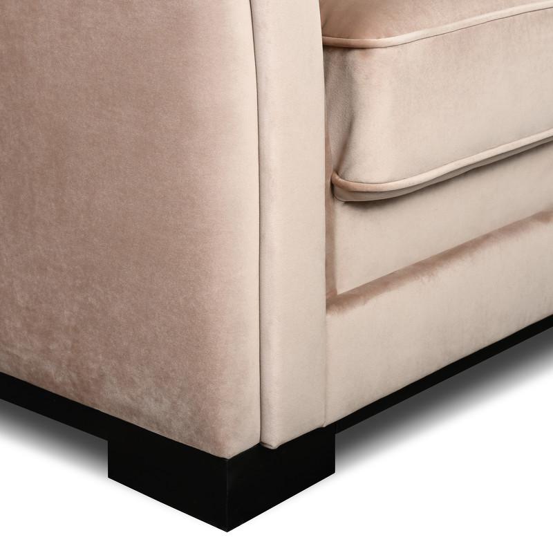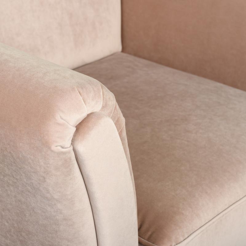 Элегантное кресло Tresor от итальянского бренда Fratelli Barri. Обивка - ткань из ассортимента фабрики в бежевых тонах. Тип ткани - велюр. Ткань отличается перламутровым переливом и высокой плотностью ворса. Состав ткани 100% полиэстер. Ножки из массива дерева, окрашены в черный цвет. Каркас кресла изготовлен из металла и МДФ. Наполнитель подлокотников и царги: эластичный ППУ плотностью 25 и 22 кг/м3 и дополнительно обернут холотеком плотностью 100г/м2. Cидение: блок независимых металлических пружин-змейка и ППУ плотностью 30 кг/м3. Дополнительно обернуты высокообъемным материалом "Холотек", плотностью 200 г/м2. Наполнитель подушек материалом типа "холофайбер", скатанным в шарики, и, дополнительно, обернуты "холотеком" плотностью 200 г/м2. Подушки имеют внутренние перегородки, уменьшающие миграцию наполнителя. Декоративные подушки в стоимость не входят, что дает возможность сочетать однотонные/цветные и разнофактурные подушки любого размера и количества по своему вкусу.