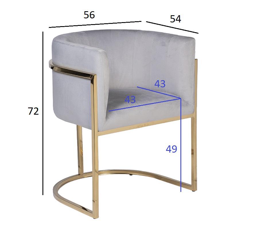 description-full - Удобное кресло с полукруглой спинкой из приятного серого велюра с легким голубым оттенком, на основании из позолоченной нержавеющей стали. Велюровое кресло на металлическом каркасе сочетает в себе благородный золотой блеск металла и мягкую текстуру велюра. Удобная модель с полукруглой спинкой нежного серо-голубого цвета эффектно смотрится в интерьере и подходит как для жилого, так и для бизнес-пространства. Основание из нержавеющей позолоченной стали делает велюровое кресло не только красивым, но и долговечным предметом обстановки. Простые формы и нейтральный цвет делают эту модель универсальной. Предлагаем купить это серо-голубое кресло, или аналогичные модели в других оттенках и вариантах дизайна. Габариты сиденья: ширина 43см, глубина 43см, высота от пола 49см.