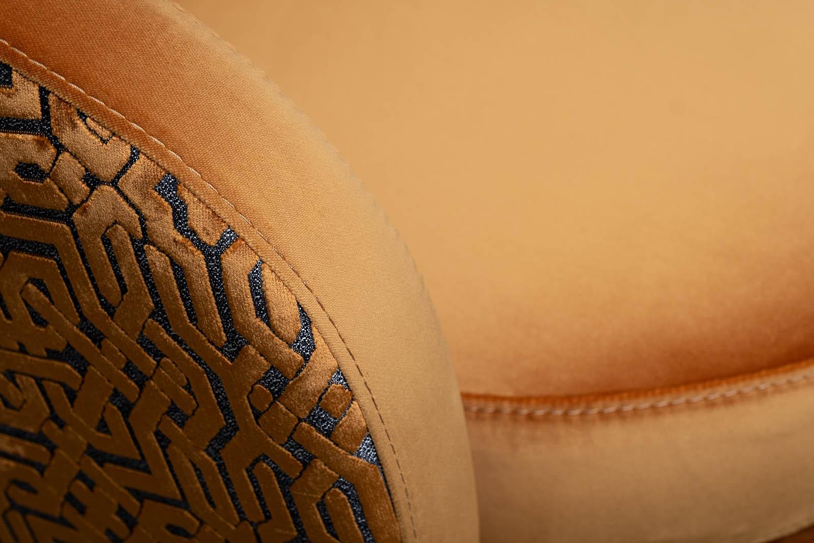 description-full - Эффектное дизайнерское кресло Наполи(Napoli) с механизмом вращения будет уместно смотреться в гостиной, холле, спальне, рабочем кабинете или в зоне отдыха. Оно воплощает лучшие черты современной мебели в стилистике ар-деко, в которой главную скрипку играют безупречный стиль и повышенный комфорт. Мягкое вращающееся кресло смотрится дорого и презентабельно, эффектно дополняет и украшает собой пространство. Особенного изящества ему придает позолоченное основание и необычная текстура обивки. За счет обтекаемой формы спинки и подлокотников модель невероятно удобная для отдыха. Можно изготовить кресло под заказ, в любом другом варианте обивки. Габариты сиденья: ширина 49см, глубина 52см, высота 41см. Диаметр металлической части основания - 54см, высота - 8см. В стандартном исполнении: обивка в тканях коллекции Garda Decor - внутренняя часть кресла вельвет Velv-ORANG, внешняя сторона спинки Latt-ORANG, основание - матовое золото, без декоративной подушки.