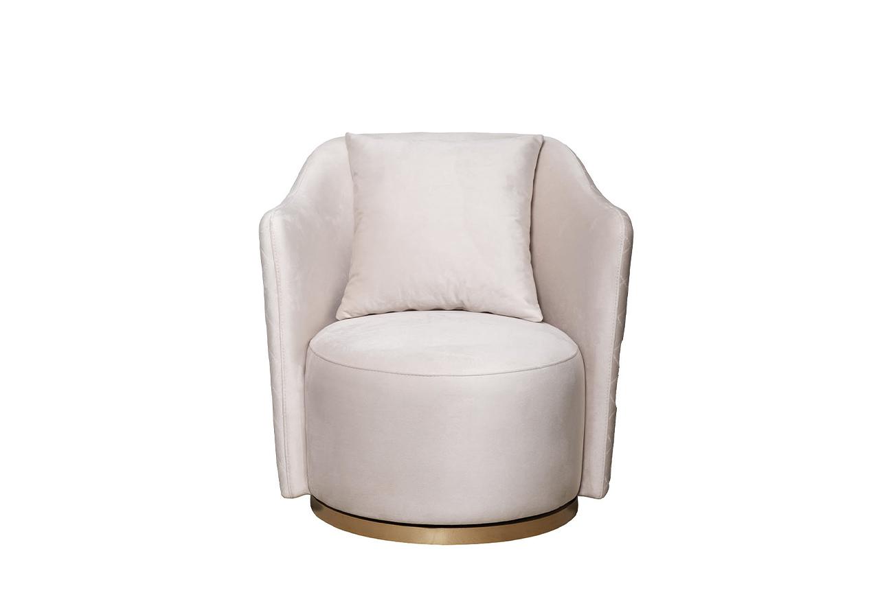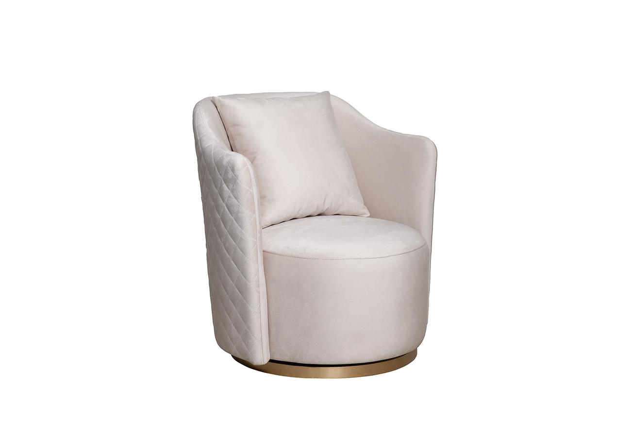 description-full - Эксклюзивное вращающееся кресло Verona станет украшением интерьера гостиной, кабинета, холла, столовой, лаунж-зоны. Максимально комфортное, стильное и универсальное в плане интерьерной компоновки. Стильное кресло с механизмом вращения вокруг своей оси обеспечит повышенный комфорт и хорошую поддержку спине. Изюминка модели – декоративное основание из позолоченного металла, что придает креслу изящества и визуальной легкости. Подушка и обтекаемая форма спинки с подлокотниками делают его особенно уютным. Кресло на заказ можно изготовить в другом цвете и вариантах обивки. Наполнитель пенополиуретан. Размер сиденья Г58*Ш60*В40см. Диаметр металлической части основания - 58см, высота - 3,5см. В стандартном исполнении: обивка - ткань велюр из коллекции тканей Garda Decor Colton002, основание - полированная нержавеющая сталь с глянцевым золотым гальваническим покрытием.