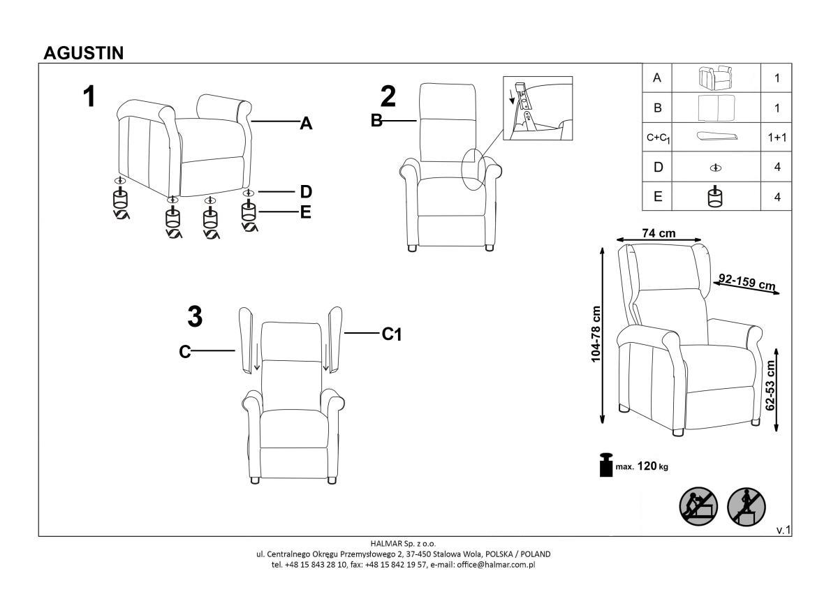 Кресло Halmar Кресло раскладное Halmar AGUSTIN (серый) арт. V-CH-AGUSTIN-FOT-POPIELATY