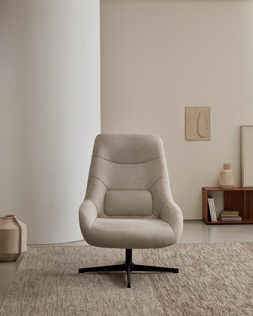 Кресло La Forma (ех Julia Grup) Celida Вращающееся кресло из бежевой синели и стали с черной отделкой арт. 178046