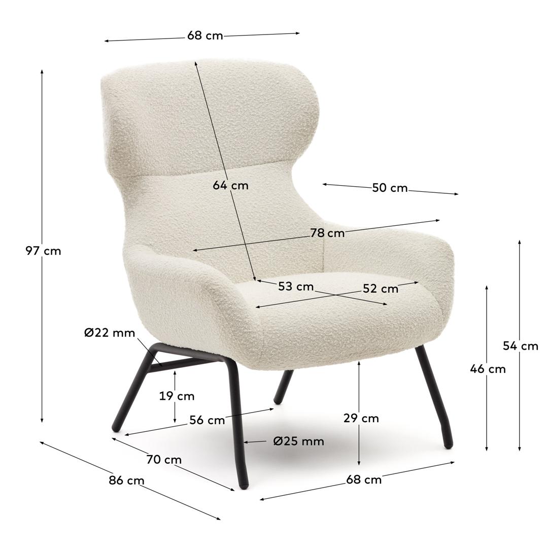 Кресло La Forma (ех Julia Grup) Belina Кресло из белой ткани букле и стали с черной отделкой арт. 178032