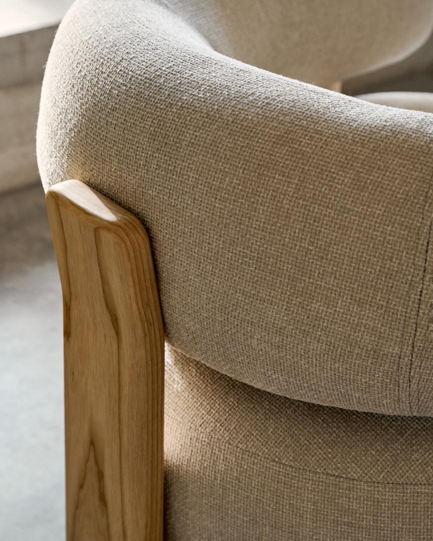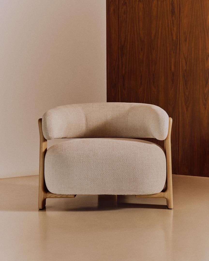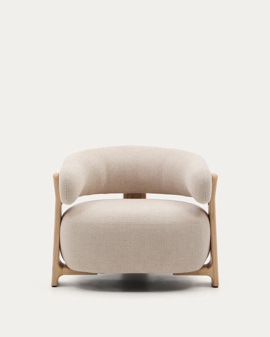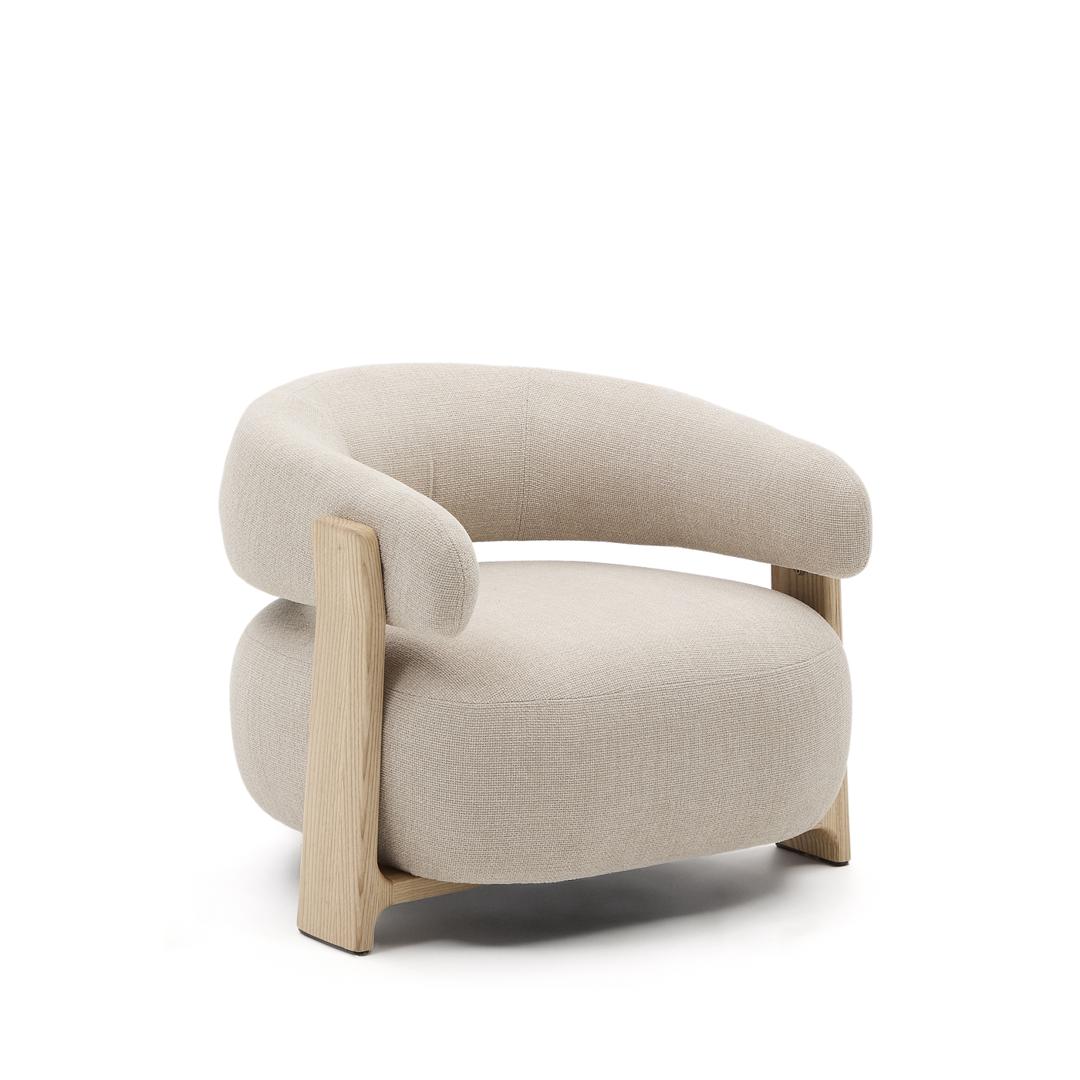 Кресло La Forma (ех Julia Grup) Granite Кресло из бежевого шенилла и массива ясеня в натуральной отделке арт. 207779