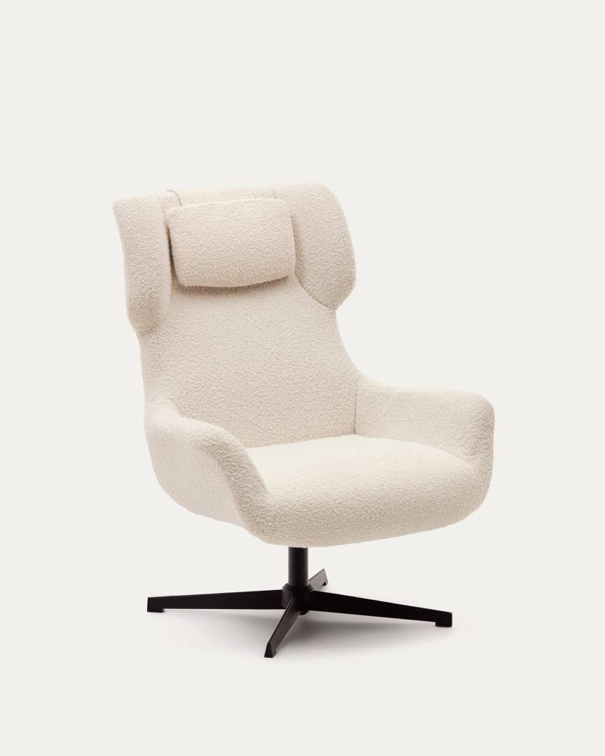 Кресло La Forma (ех Julia Grup) Zalina Вращающееся кресло с подлокотниками из белой ткани букле арт. 178412