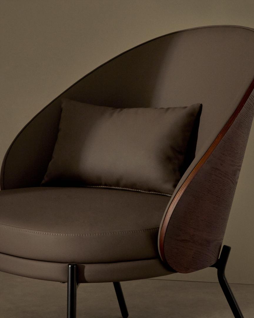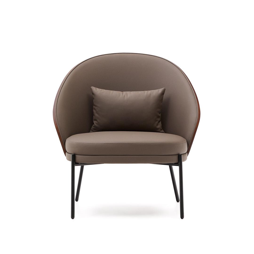 Кресло La Forma (ех Julia Grup) Кресло Eamy из коричневой экокожи, ясеневого шпона с отделкой под орех и черного металла арт. 198019