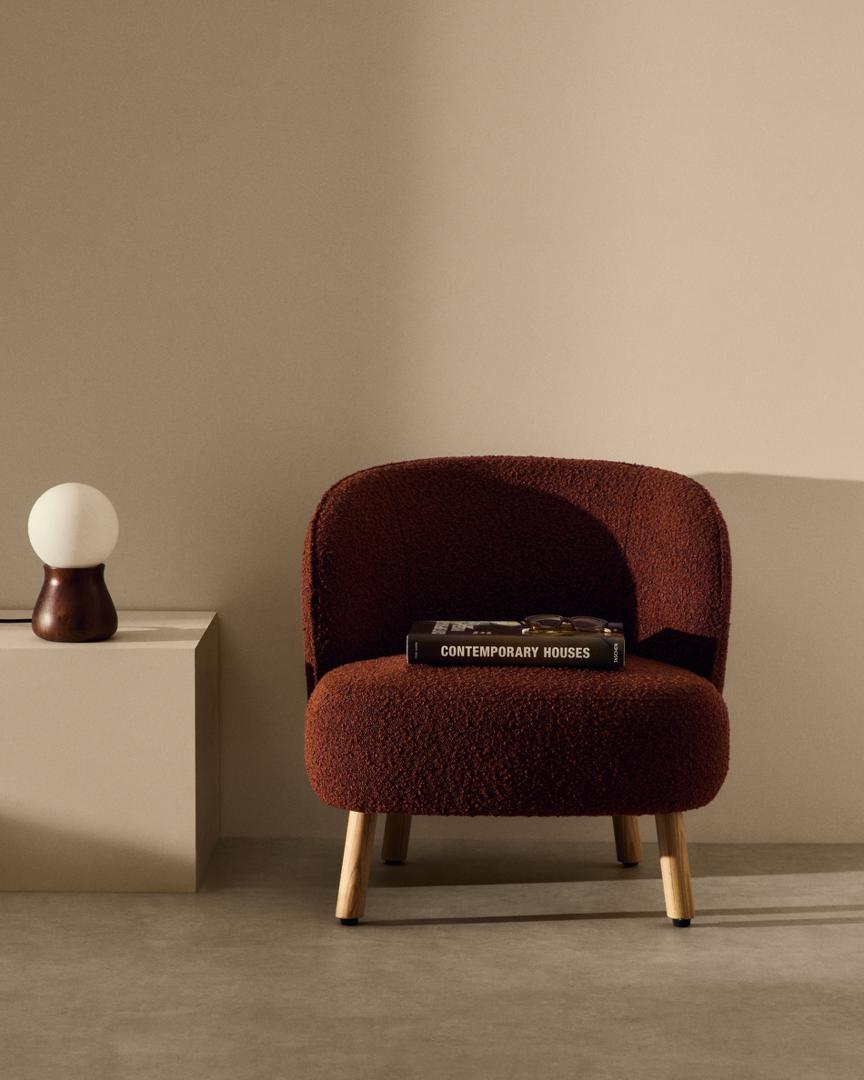 Кресло La Forma (ех Julia Grup) Кресло Ulit из терракотового букле с ножками из бука в натуральной отделке арт. 219335