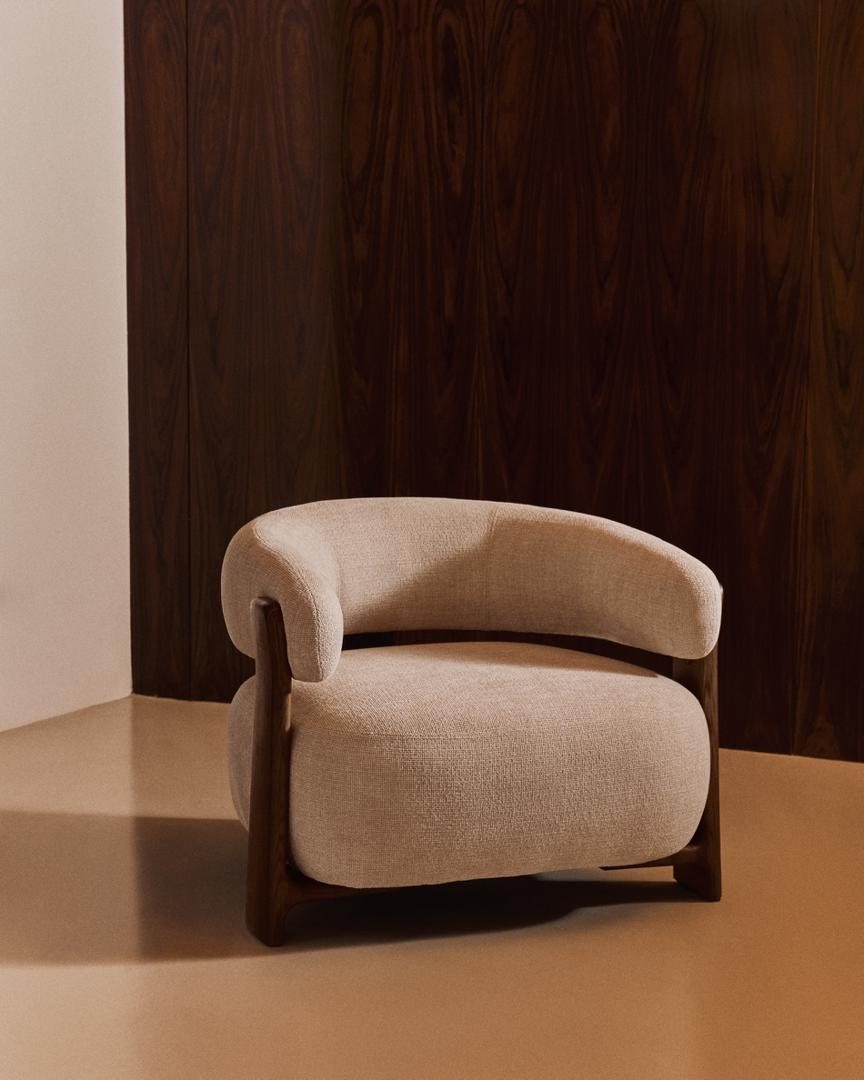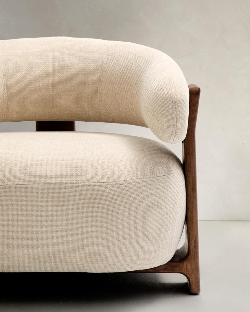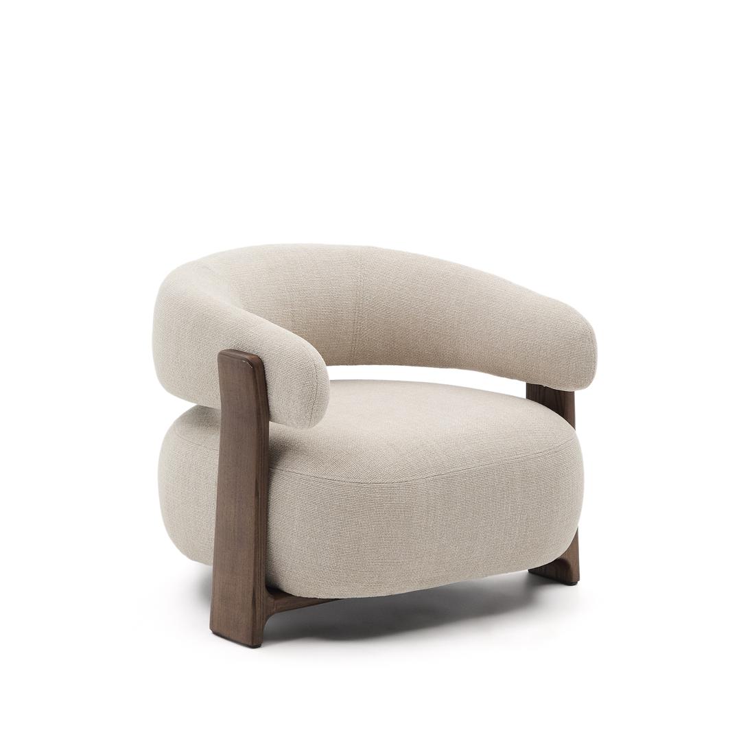 Кресло La Forma (ех Julia Grup) Granite Кресло из бежевого шенилла и массива ясеня в отделке орех арт. 207783