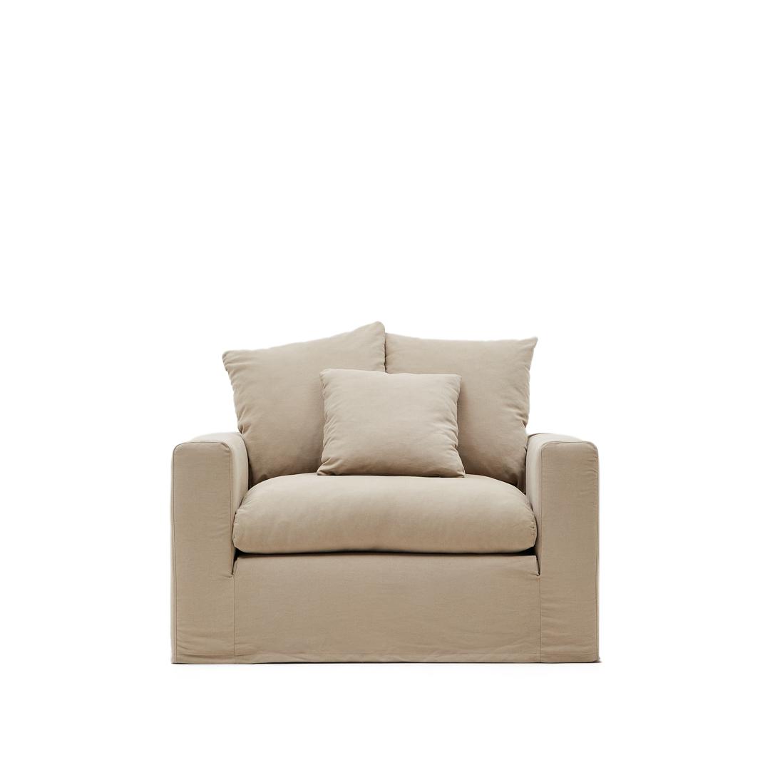 Кресло La Forma (ех Julia Grup) Кресло Nora со съемным чехлом серо-коричневое из льна и хлопка 140 см арт. 192941