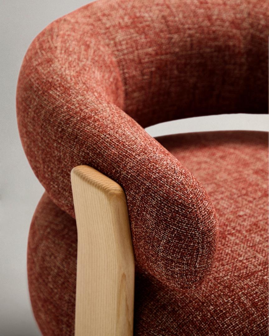 Кресло La Forma (ех Julia Grup) Granite Кресло из терракотового шенилла и массива ясеня в натуральной отделке арт. 207781