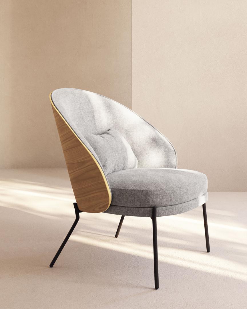 Кресло La Forma (ех Julia Grup) Кресло Eamy светло-серое из шпона ясеня с натуральной отделкой арт. 150956