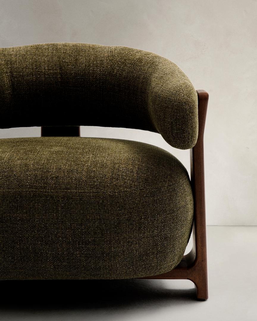 Кресло La Forma (ех Julia Grup) Granite Кресло из зеленого шенилла и массива ясеня в отделке орех арт. 207785