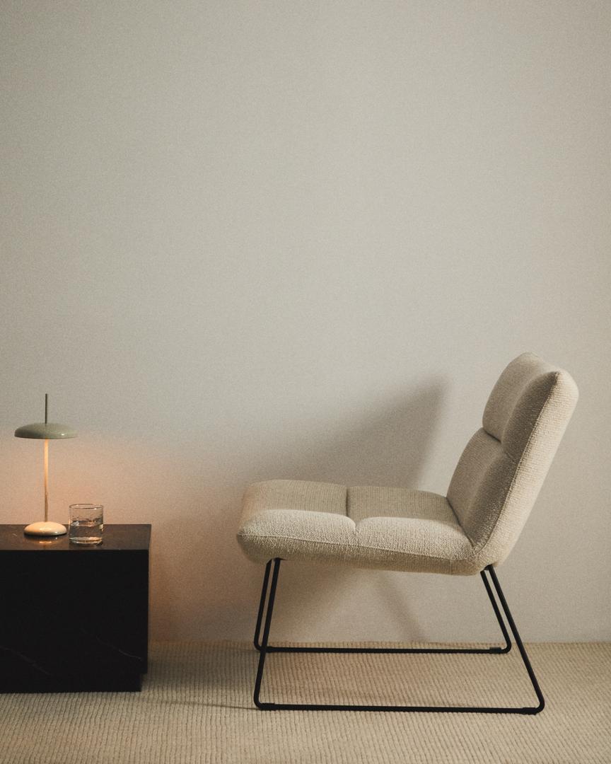 Это кресло сочетает в себе чистые линии и сбалансированные пропорции, создавая современный и элегантный силуэт, идеально подходящий для любого пространства. Слегка наклонная спинка и просторное сиденье располагают к отдыху. Обивка выполнена из крупнозернистого шенилла с двухцветным 3D-эффектом, очень мягкого на ощупь. Ткань обладает высокой износостойкостью и светостойкостью, а также водоотталкивающей пропиткой для лёгкого ежедневного ухода. Сиденье средней жёсткости.