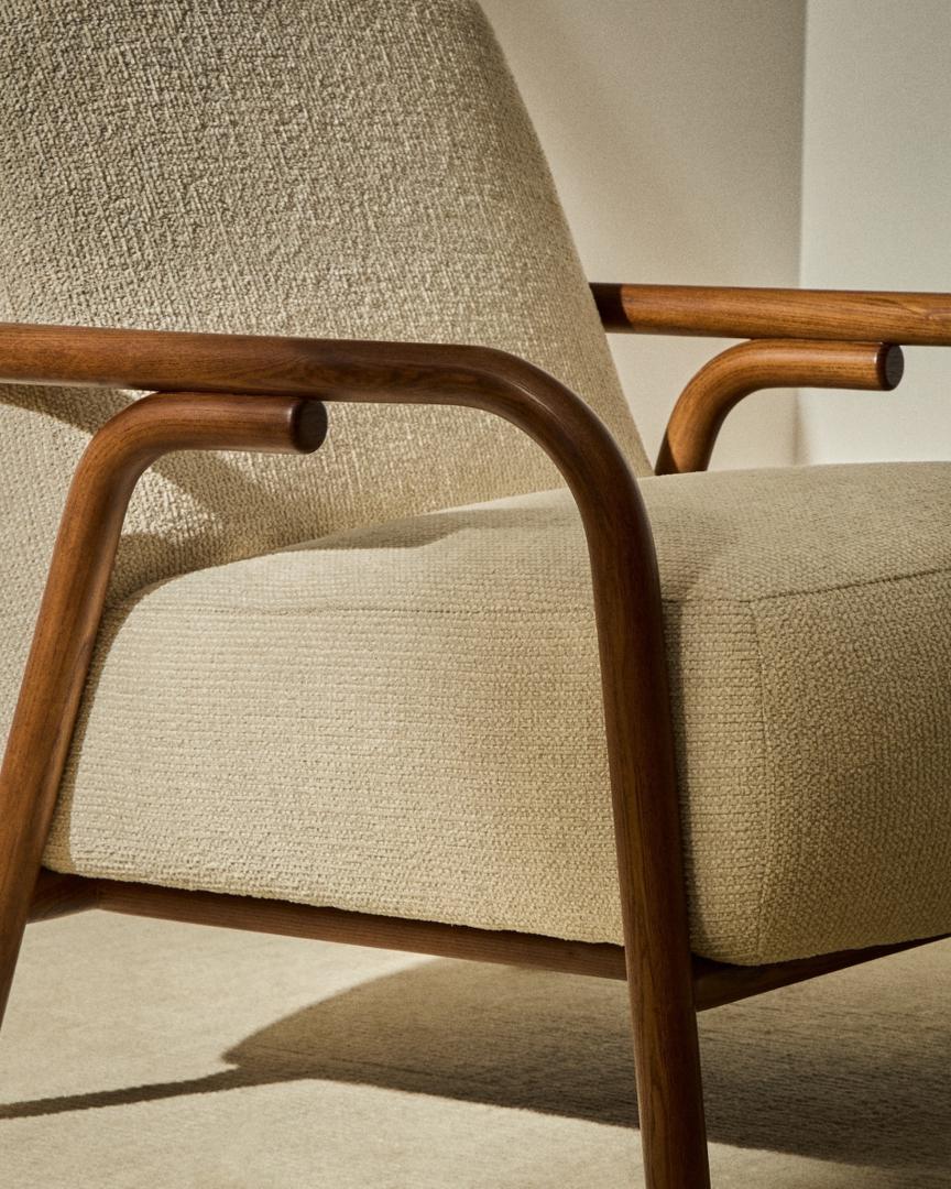 Кресло La Forma (ех Julia Grup) Кресло Sylo из бежевого шенилла и ясеня с отделкой цвета орех арт. 443046