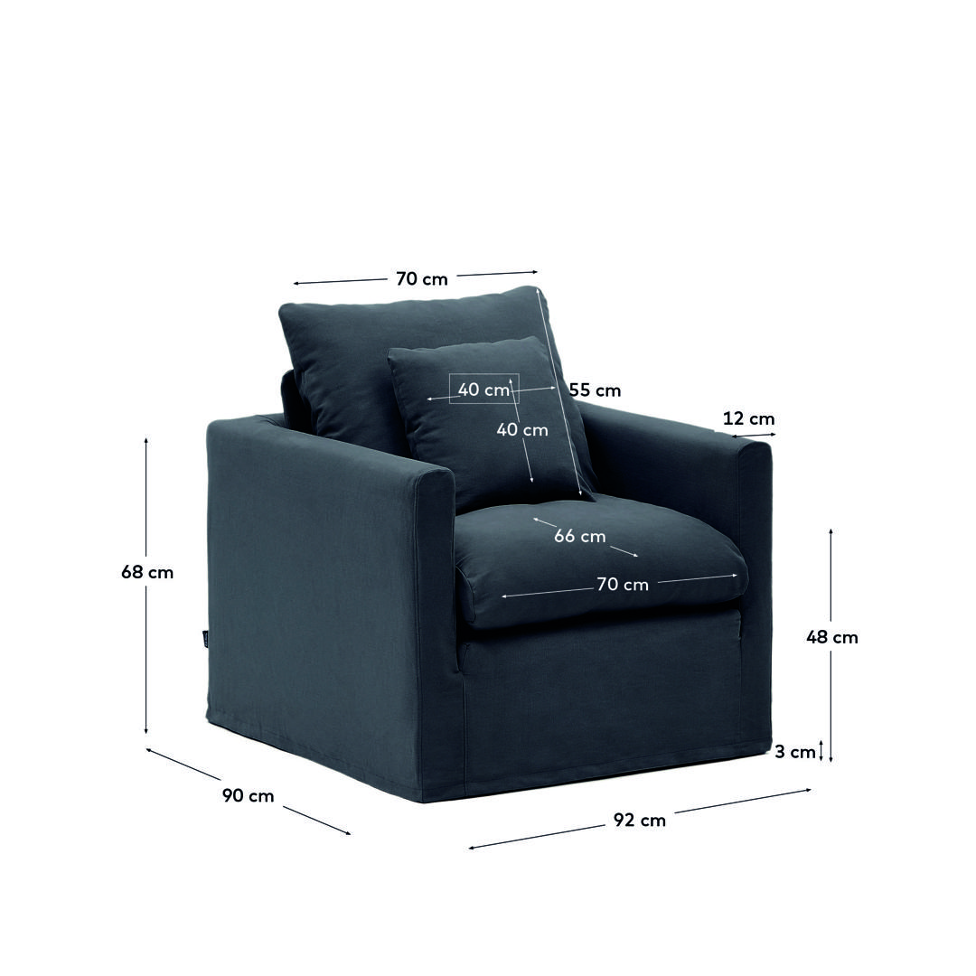 Кресло La Forma (ех Julia Grup) Кресло Nora со съемным чехлом и подушкой из льна и хлопка серо-антрацитовое 92 см арт. 193292