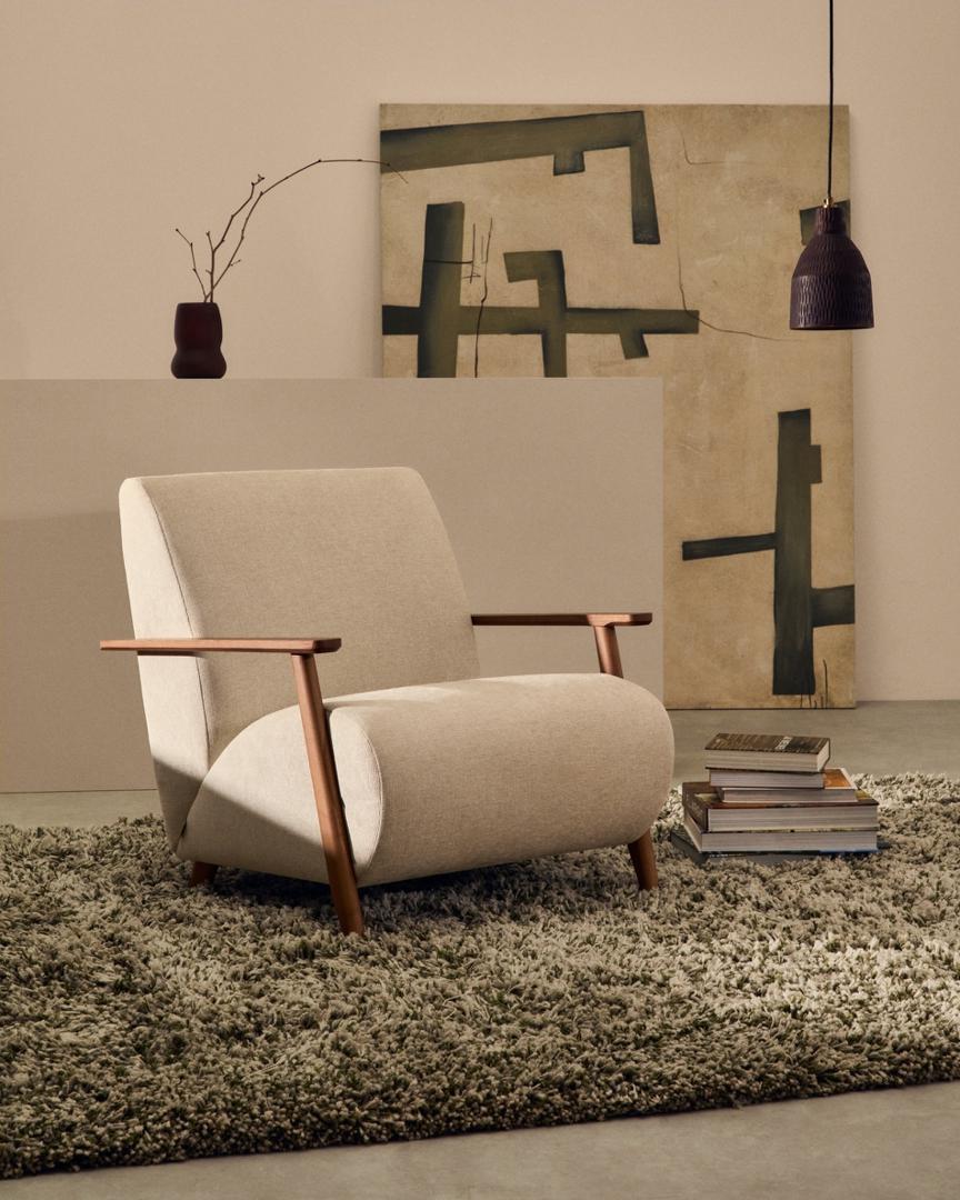 Кресло La Forma (ех Julia Grup) Кресло Meghan из жемчужного шенилла и массива ясеня с отделкой под орех арт. 210260