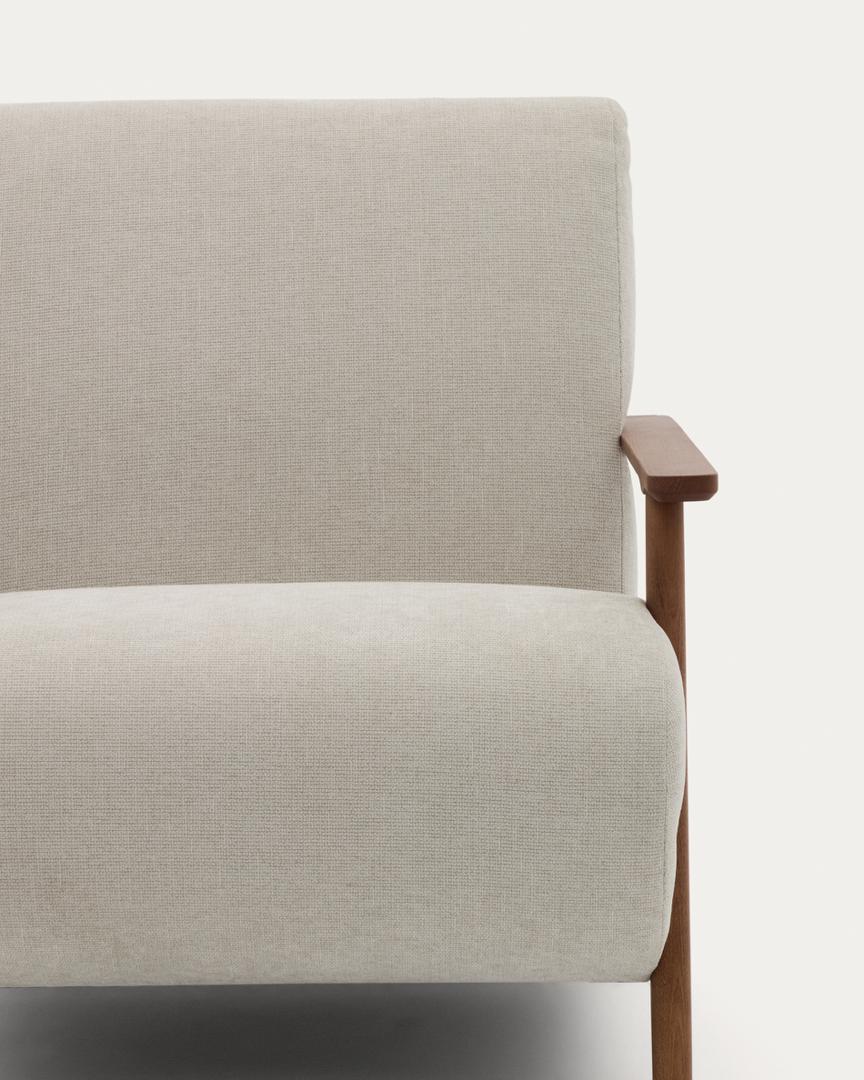 Дизайн этого кресла минималистский, в расслабленном стиле, который сочетается с открытой рамой из массива ясеня. Его сиденье и спинка заполнены пеной, что придает ему средне-мягкую посадку, а его рама изготовлена из сосны и ДСП E0.