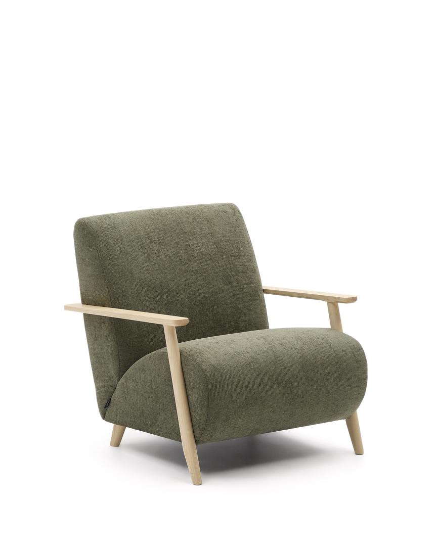 Кресло La Forma (ех Julia Grup) Кресло Meghan из зеленого шенилла с массивом бука в натуральной отделке арт. 209179