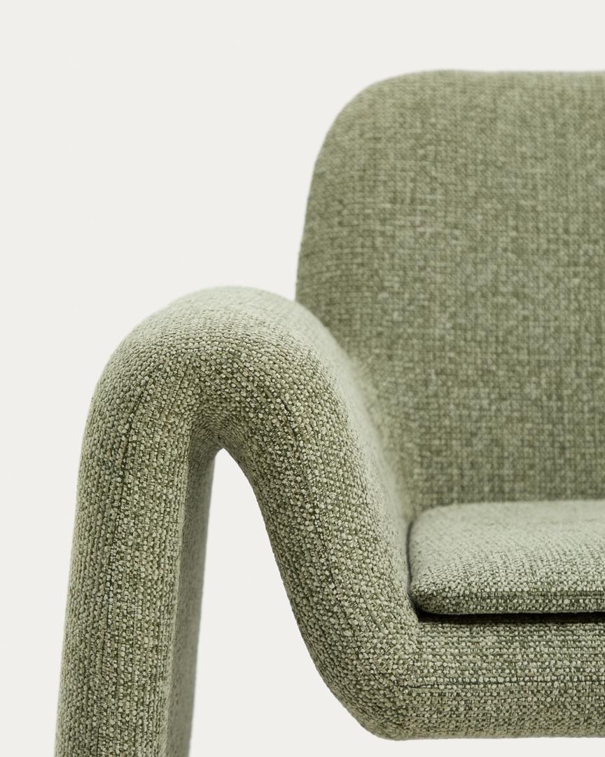 то кресло выделяется тщательно продуманным дизайном, разработанным Мортеном Георгсеном эксклюзивно для Kave Home. Обивка из крупнозернистого шенилла с двухцветным 3D-эффектом и невероятно мягкой текстурой обеспечивает обволакивающий комфорт. Ткань отличается высокой износостойкостью и светостойкостью, а водоотталкивающая обработка облегчает уход и сохраняет внешний вид даже после длительного использования. Поставщик ткани сертифицирован по стандарту OEKO-TEX® STANDARD 100, что подтверждает её экологичность.