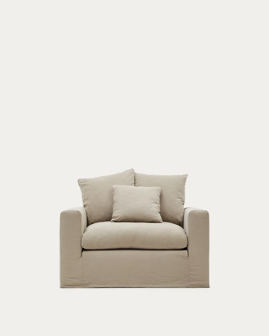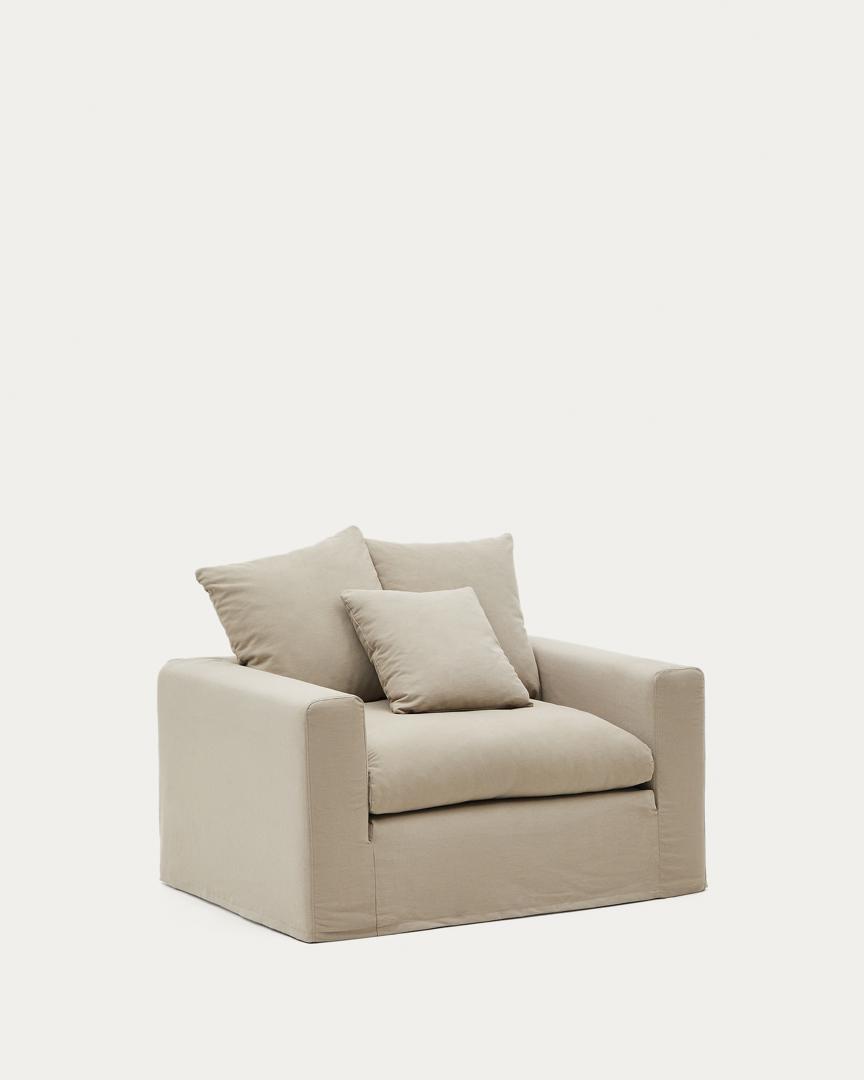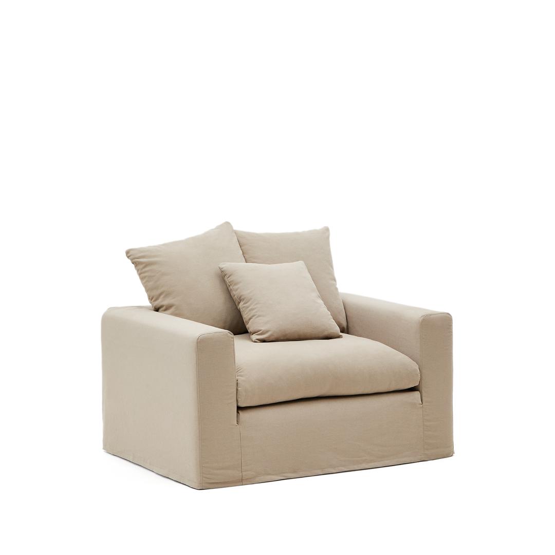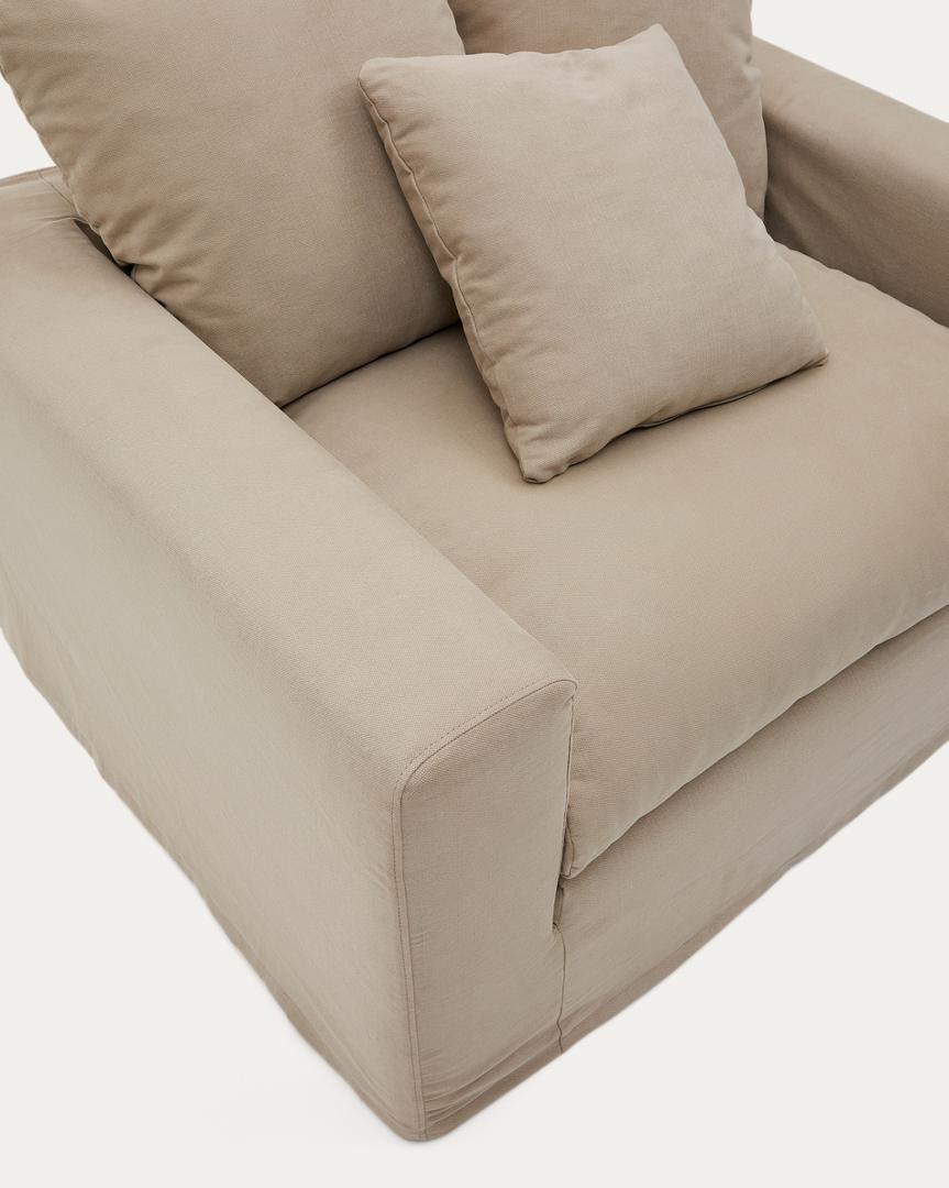 Кресло La Forma (ех Julia Grup) Кресло Nora со съемным чехлом серо-коричневое из льна и хлопка 140 см арт. 192941