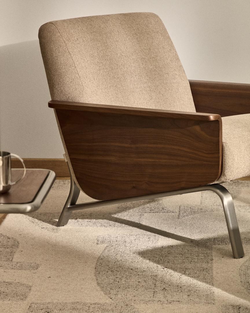 Кресло La Forma (ех Julia Grup) Кресло Amsen светло-коричневое из ореховой фанеры с ножками из стали арт. 428800