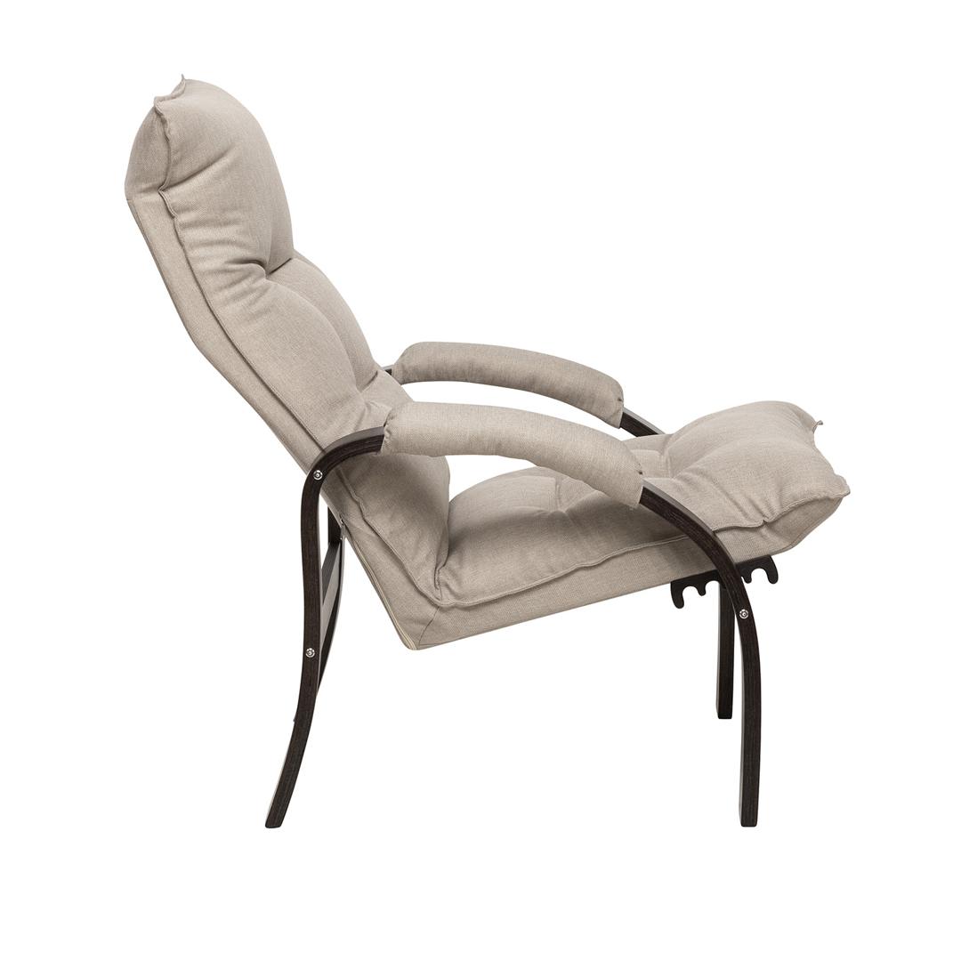 Мягкое кресло для отдыха дома и на даче Левада сделает комфортным интерьер комнаты модерн или хай-тек. Стильные кресла трансформеры из гнутоклееной коллекции мягкой мебели Leset имеют характерный силуэт, функциональны и компактны, поэтому популярны. Кресло-стул с подлокотниками и уютным сиденьем уместно в спальне, гостиной, прихожей, на балконе, в закрытой дачной беседке. У основания кресло раскладное оснащено механизмом гребенка, за счет чего одним движением спинка переключается в 4 положения. Этим модель напоминает шезлонг, но Левада Leset -полноценное интерьерное кресло для отдыха: современный дизайн, изящный деревянный каркас под итальянским лаком, велюровый чехол, наполнитель из эластичного пенополиуретана. Накладки на подлокотниках снимаются для чистки, приспинная подушка декорирована пуговицами. Эргономичное каркасное кресло раскладушка выдержит до 120 кг. Регулируемое кресло позволит расслабиться как на диване, это чудесный подарок в новую квартиру друзьям.