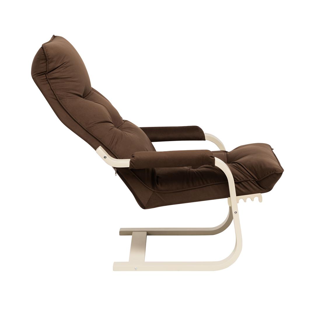 Популярное кресло-раскладушка Оливер украсит гостиную, спальню, прихожую модерн или хай-тек, и станет фишкой зоны отдыха на даче. Гнутоклееные кресла из линейки мягкой мебели Leset узнаваемы по плавным формам и высокой функциональности. Кресло раскладное можно использовать как в квартире, так и в благоустроенной беседке. Одним движением кресло трансформер переводится в 4 положения спинки. Силуэт раскладного кресла и механизм переключения напоминает шезлонг, за что кресло-стул называют раскладушкой, но качество наполнителя и обивки, премиальное исполнение основания и покрытие каркасной части итальянским лаком, глубина сиденья дарят чудесное расслабление и здоровье позвоночника. Эргономичный каркас выглядит изящно, но выдержит до 120 кг, матрас декорирован обтянутыми материалом пуговицами и боковой окантовкой, накладки на подлокотниках съемные. Трансформеры Оливер с велюровыми подушками доступны в сочетании с опорами венге, слоновая кость, орех.