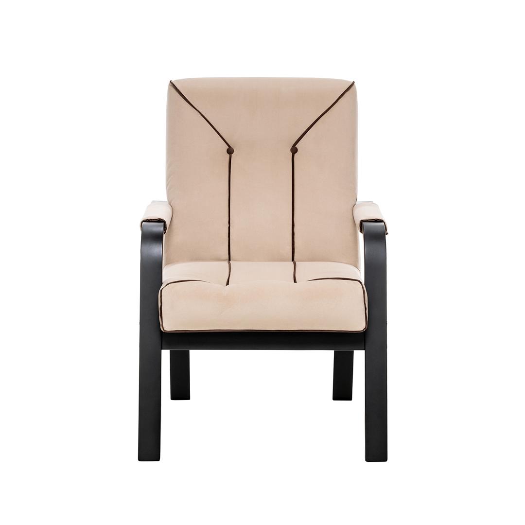 Кресло «Модена» станет одним из основных инструментов выражения дизайнерской идеи и создаст максимальный комфорт. Элегантный силуэт и природные оттенки обивки и каркаса добавят изысканности интерьеру в сдержанном классическом или минималистском стиле. Кресло «Модена ЛЮКС» создаст элегантную пару с консолью в гостиной, поможет разгрузить пространство в спальне или добиться идеальной симметрии при обустройстве зоны приема гостей. Прочный каркас с шелковистым лаковым покрытием удачно сочетается с нежной обивкой, даря приятные тактильные ощущения. Для придания дополнительного комфорта подлокотники оборудованы мягкими накладками, а продуманная конструкция ножек добавляет креслу устойчивости и защищает напольное покрытие от царапин. Мягкое кресло в нейтральных оттенках с геометрическим рисунком строчек подойдет в любой интерьер и примет в объятия, поможет расслабиться, подарит незабываемые минуты истинного комфорта.