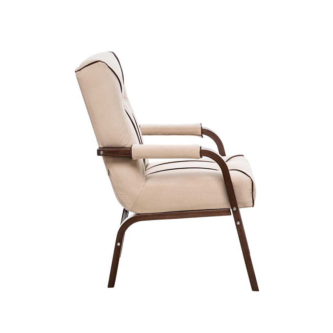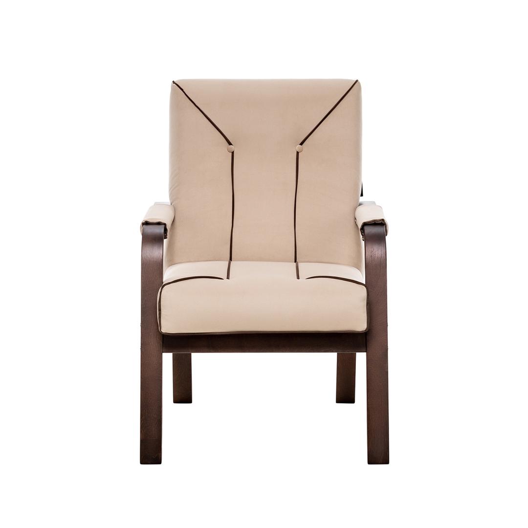 Кресло «Модена» станет одним из основных инструментов выражения дизайнерской идеи и создаст максимальный комфорт. Элегантный силуэт и природные оттенки обивки и каркаса добавят изысканности интерьеру в сдержанном классическом или минималистском стиле. Кресло «Модена ЛЮКС» создаст элегантную пару с консолью в гостиной, поможет разгрузить пространство в спальне или добиться идеальной симметрии при обустройстве зоны приема гостей. Прочный каркас с шелковистым лаковым покрытием удачно сочетается с нежной обивкой, даря приятные тактильные ощущения. Для придания дополнительного комфорта подлокотники оборудованы мягкими накладками, а продуманная конструкция ножек добавляет креслу устойчивости и защищает напольное покрытие от царапин. Мягкое кресло в нейтральных оттенках с геометрическим рисунком строчек подойдет в любой интерьер и примет в объятия, поможет расслабиться, подарит незабываемые минуты истинного комфорта.