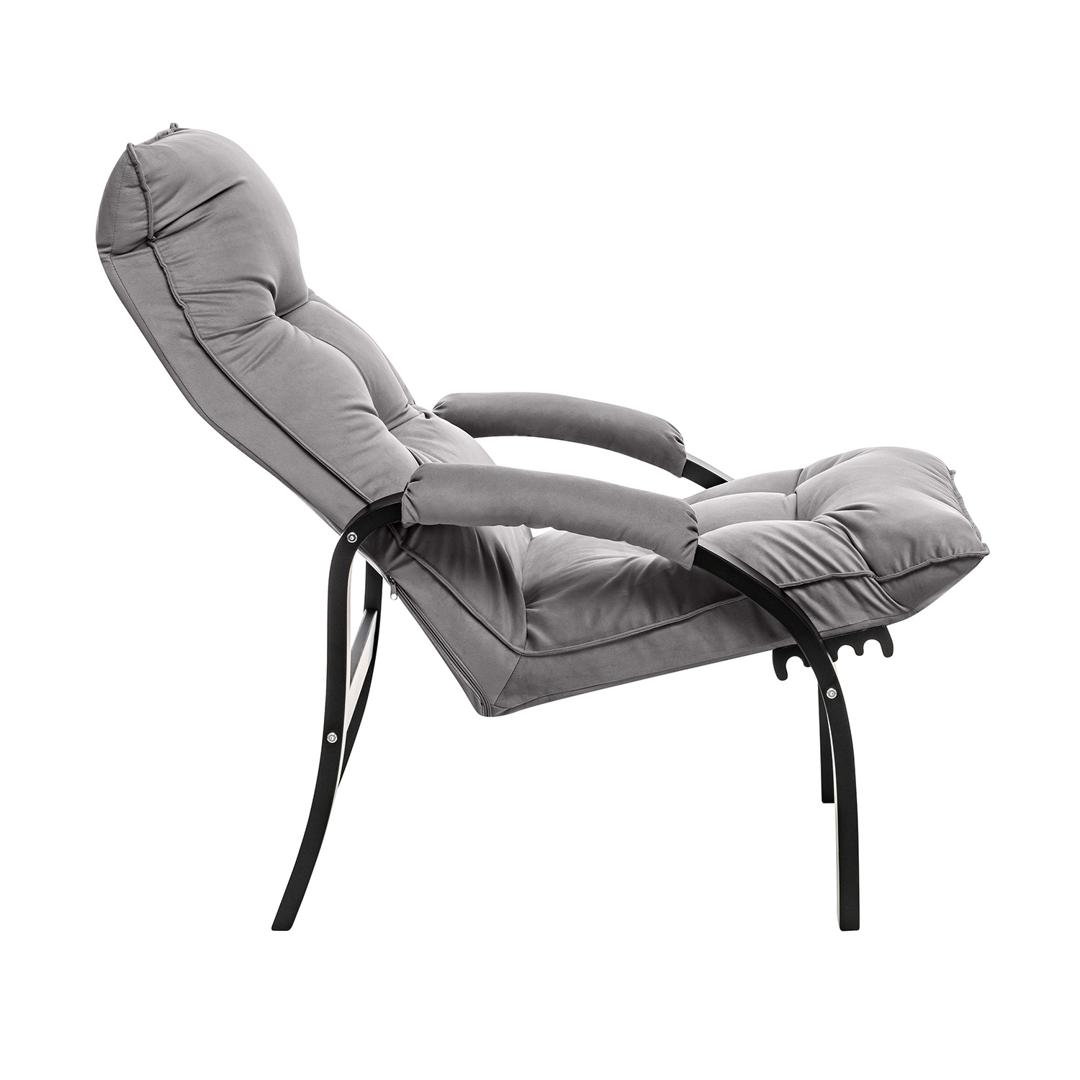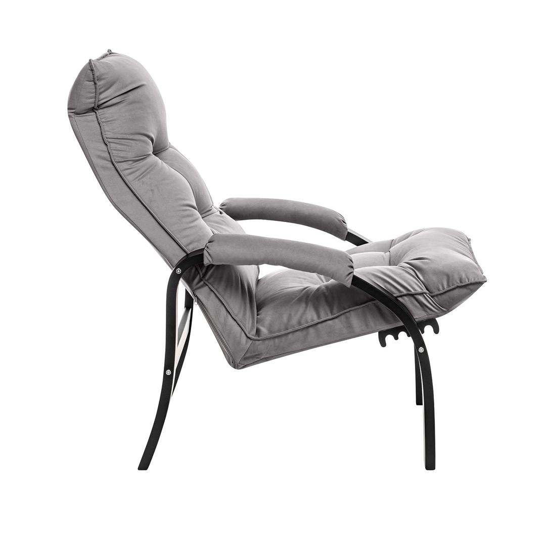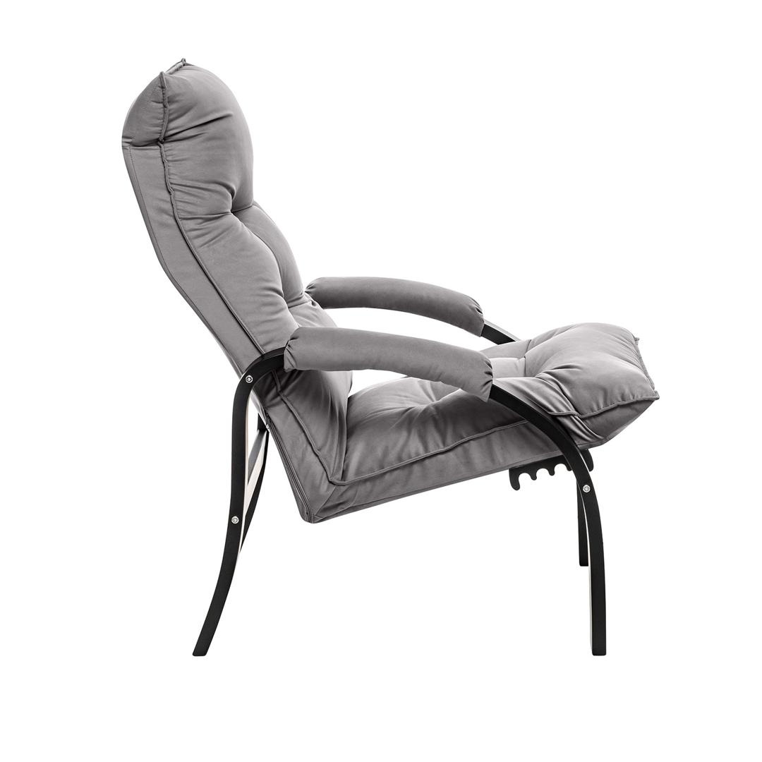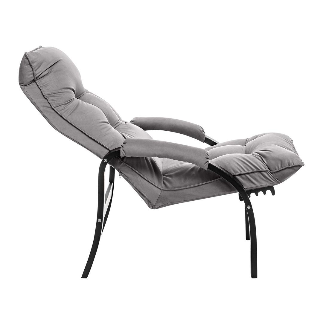 Мягкое кресло для отдыха дома и на даче Левада сделает комфортным интерьер комнаты модерн или хай-тек. Стильные кресла трансформеры из гнутоклееной коллекции мягкой мебели Leset имеют характерный силуэт, функциональны и компактны, поэтому популярны. Кресло-стул с подлокотниками и уютным сиденьем уместно в спальне, гостиной, прихожей, на балконе, в закрытой дачной беседке. У основания кресло раскладное оснащено механизмом гребенка, за счет чего одним движением спинка переключается в 4 положения. Этим модель напоминает шезлонг, но Левада Leset -полноценное интерьерное кресло для отдыха: современный дизайн, изящный деревянный каркас под итальянским лаком, велюровый чехол, наполнитель из эластичного пенополиуретана. Накладки на подлокотниках снимаются для чистки, приспинная подушка декорирована пуговицами. Эргономичное каркасное кресло раскладушка выдержит до 120 кг. Регулируемое кресло позволит расслабиться как на диване, это чудесный подарок в новую квартиру друзьям.