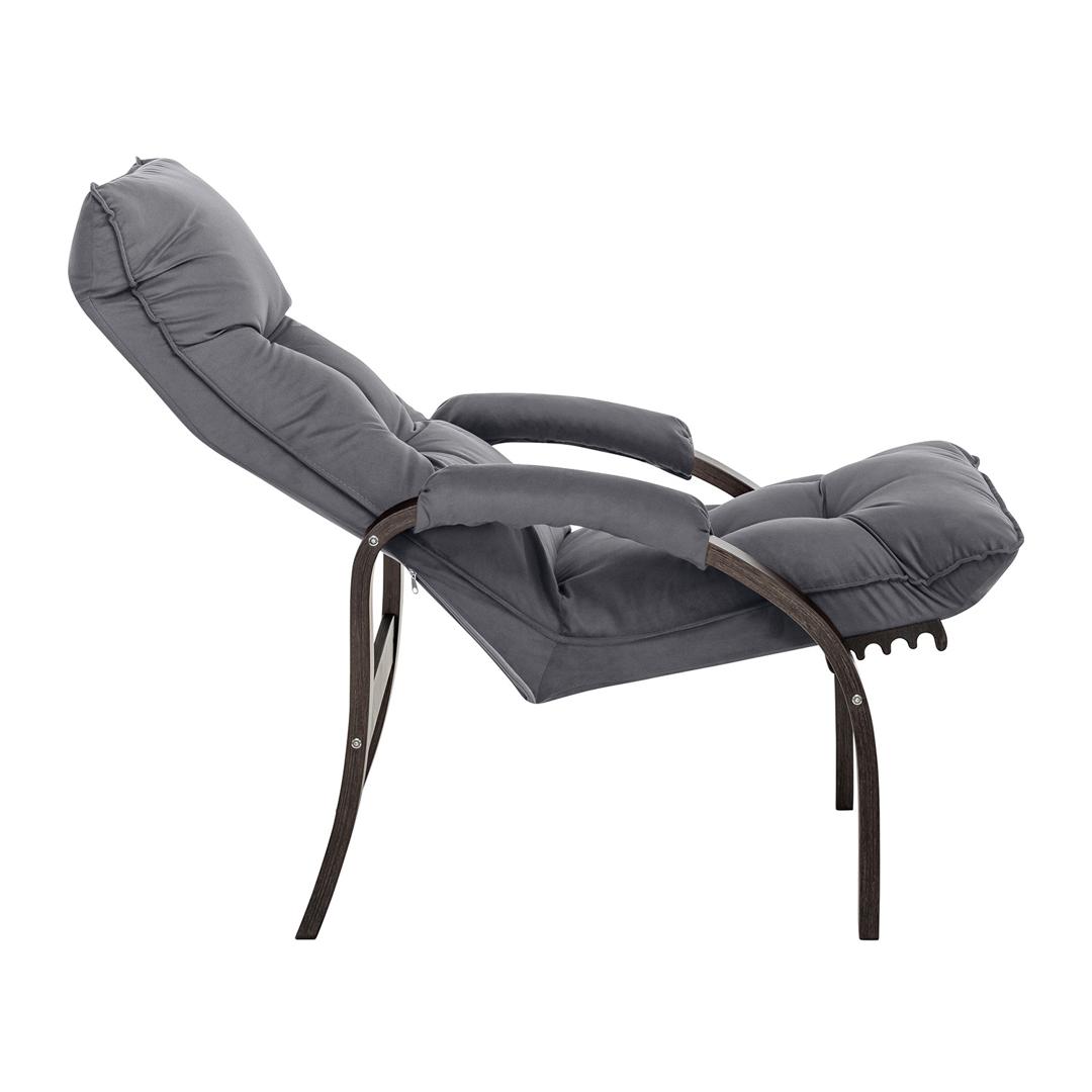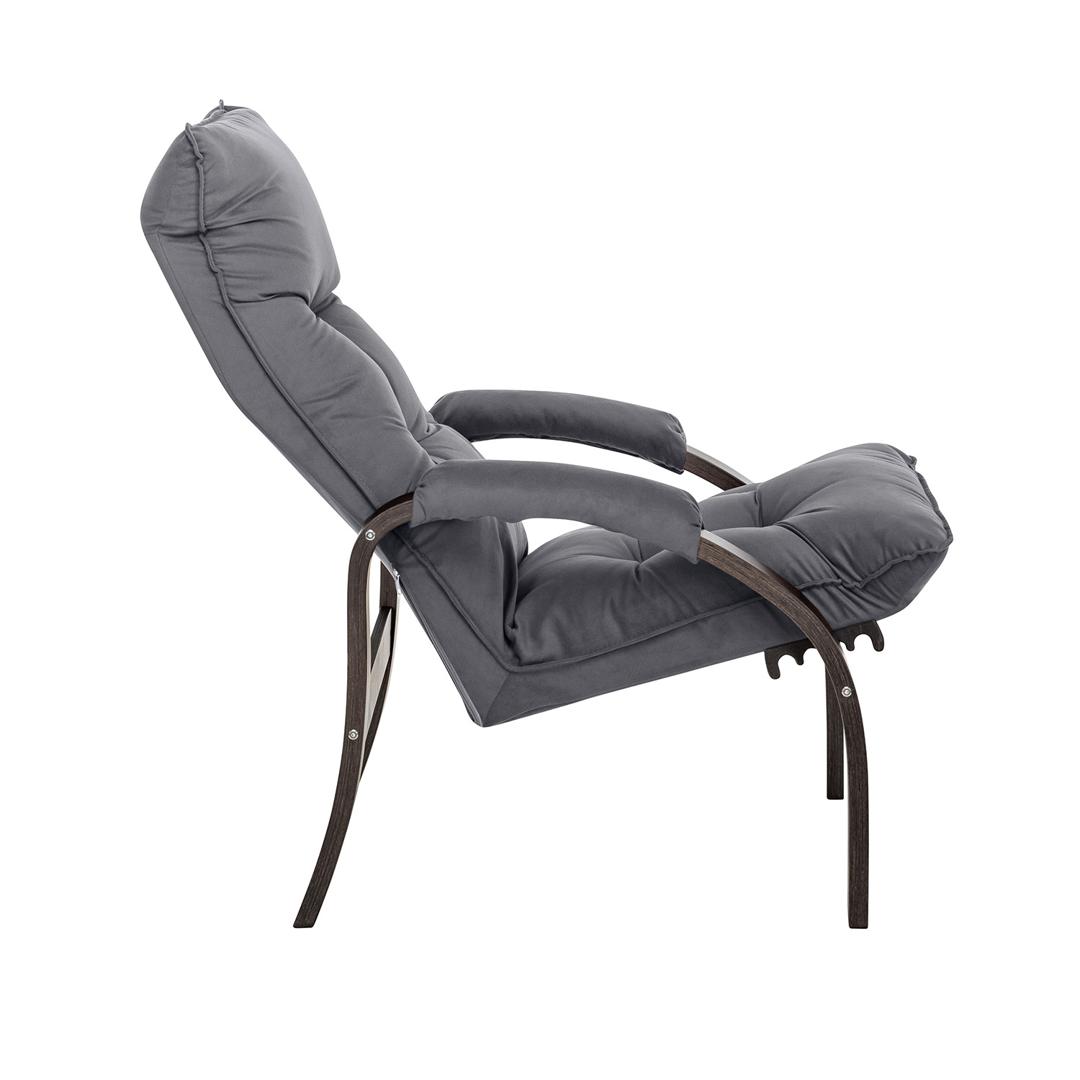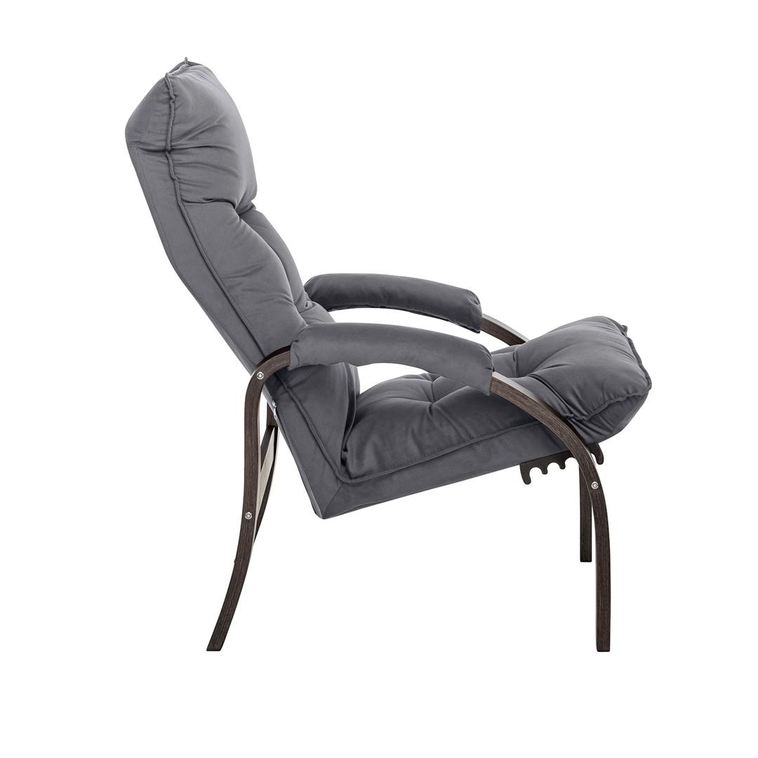 Мягкое кресло для отдыха дома и на даче Левада сделает комфортным интерьер комнаты модерн или хай-тек. Стильные кресла трансформеры из гнутоклееной коллекции мягкой мебели Leset имеют характерный силуэт, функциональны и компактны, поэтому популярны. Кресло-стул с подлокотниками и уютным сиденьем уместно в спальне, гостиной, прихожей, на балконе, в закрытой дачной беседке. У основания кресло раскладное оснащено механизмом гребенка, за счет чего одним движением спинка переключается в 4 положения. Этим модель напоминает шезлонг, но Левада Leset -полноценное интерьерное кресло для отдыха: современный дизайн, изящный деревянный каркас под итальянским лаком, велюровый чехол, наполнитель из эластичного пенополиуретана. Накладки на подлокотниках снимаются для чистки, приспинная подушка декорирована пуговицами. Эргономичное каркасное кресло раскладушка выдержит до 120 кг. Регулируемое кресло позволит расслабиться как на диване, это чудесный подарок в новую квартиру друзьям.
