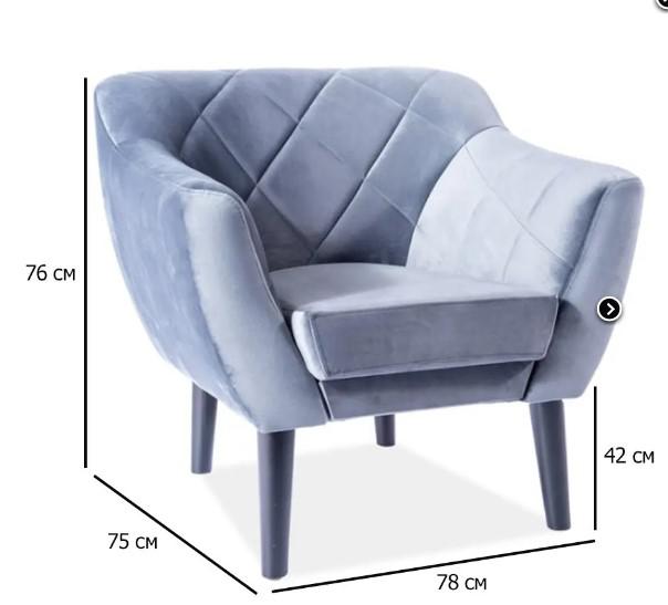 : ткань / Вес, кг: 15 / Высота (см): 76 / Гарантия, мес.: 12 / Глубина (см): 75 / Глубина сиденья (см): 54 / Количество коробок: 1 / Материал каркаса: дерево / Материал сидения: велюр / Необходимость сборки: да / Размер упаковки 1: 0,7/0,78/0,47 / Страна производитель: Польша / Цвет: серый / Ширина (см): 78