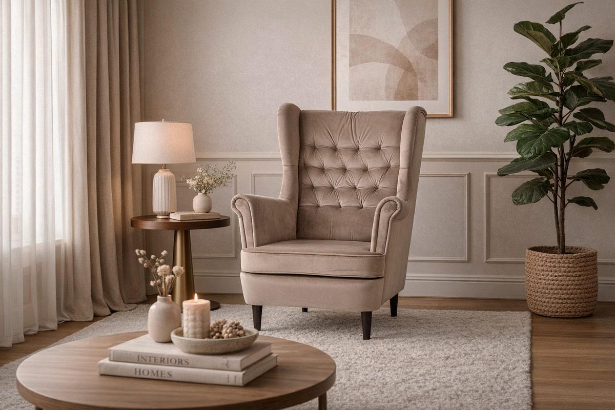 : ткань / Вес, кг: 25 / Высота (см): 101 / Гарантия, мес.: 12 / Глубина (см): 92 / Глубина сиденья (см): 57 / Количество коробок: 1 / Материал каркаса: дерево / Материал сидения: велюр / Необходимость сборки: да / Размер упаковки 1: 0,6/0,83/0,9 / Страна производитель: Польша / Цвет: бежевый / Ширина (см): 81