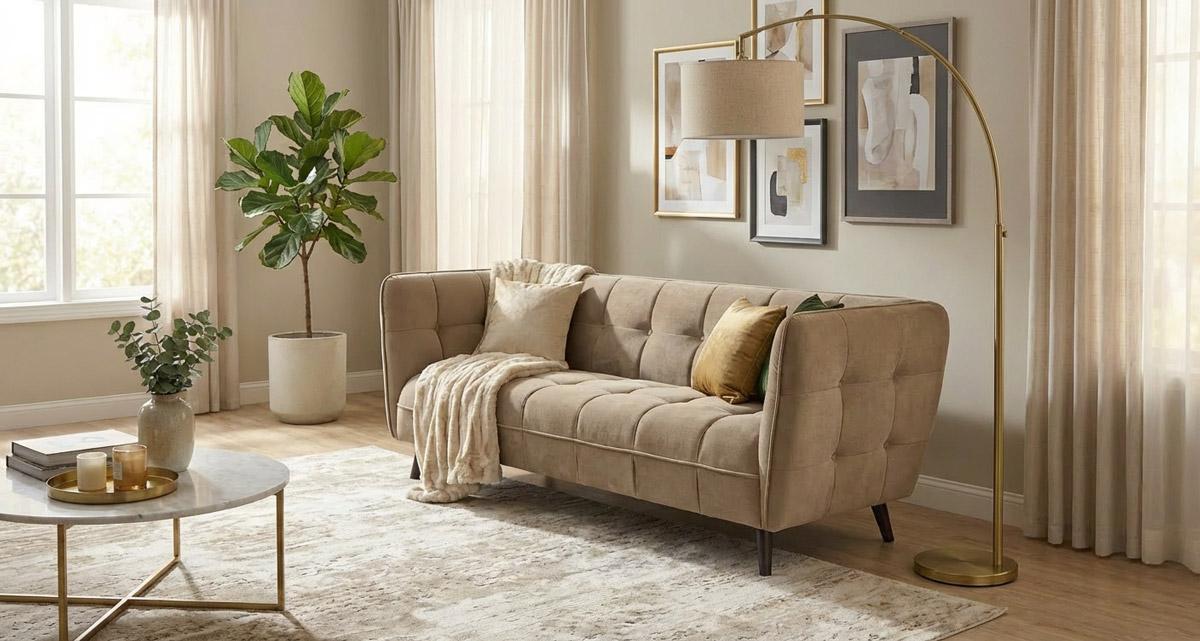 : ткань / Вес, кг: 55 / Высота (см): 78 / Гарантия, мес.: 12 / Глубина (см): 85 / Глубина сиденья (см): 60 / Количество коробок: 1 / Материал каркаса: дерево / Материал сидения: велюр / Необходимость сборки: да / Размер упаковки 1: 0,69/2,04/0,88 / Страна производитель: Польша / Цвет: бежевый / Ширина (см): 200