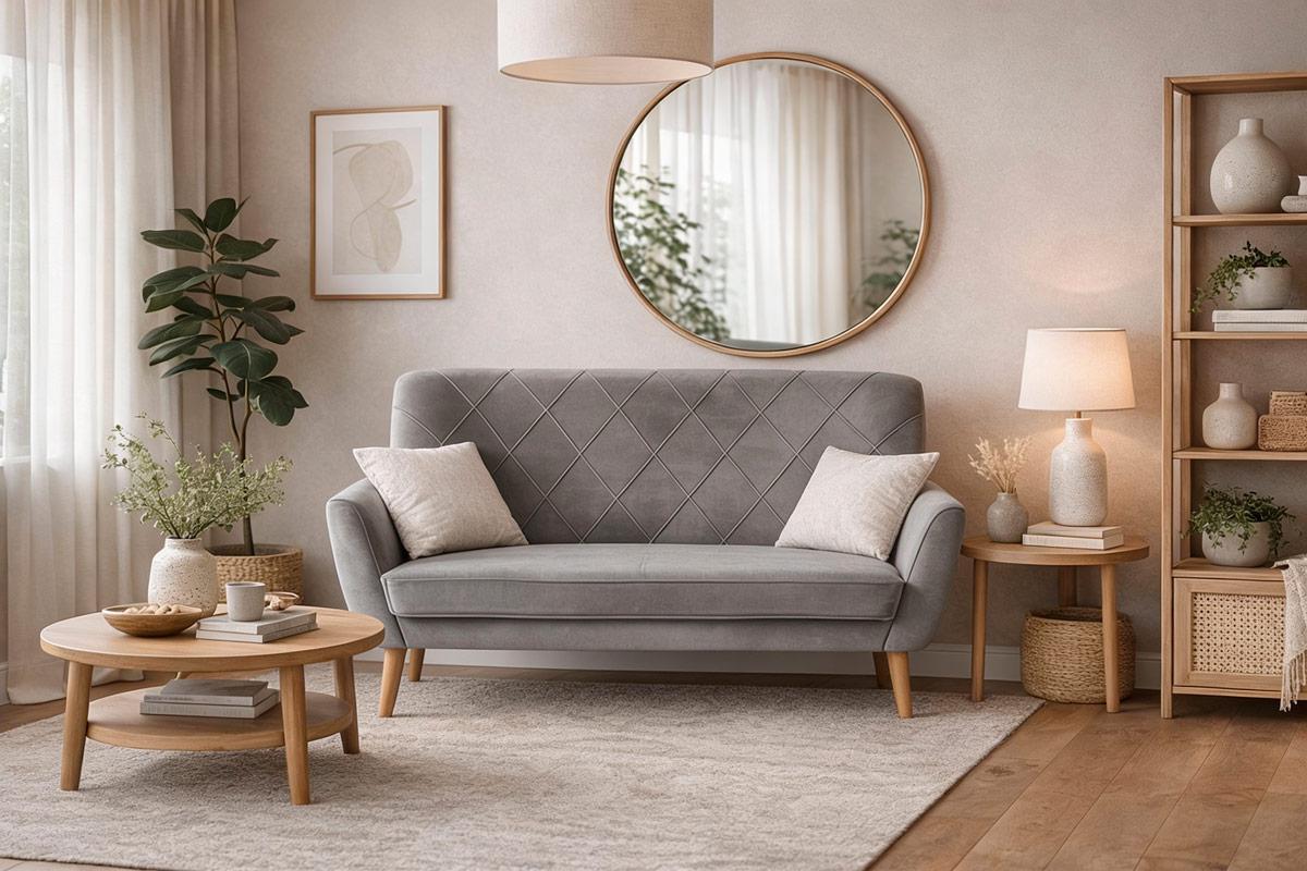 : ткань / Вес, кг: 26 / Высота (см): 90 / Гарантия, мес.: 12 / Глубина (см): 75 / Глубина сиденья (см): 55 / Количество коробок: 1 / Материал каркаса: дерево / Материал сидения: велюр / Необходимость сборки: да / Размер упаковки 1: 1,3/0,76/0,68 / Страна производитель: Польша / Цвет: серый / Ширина (см): 136