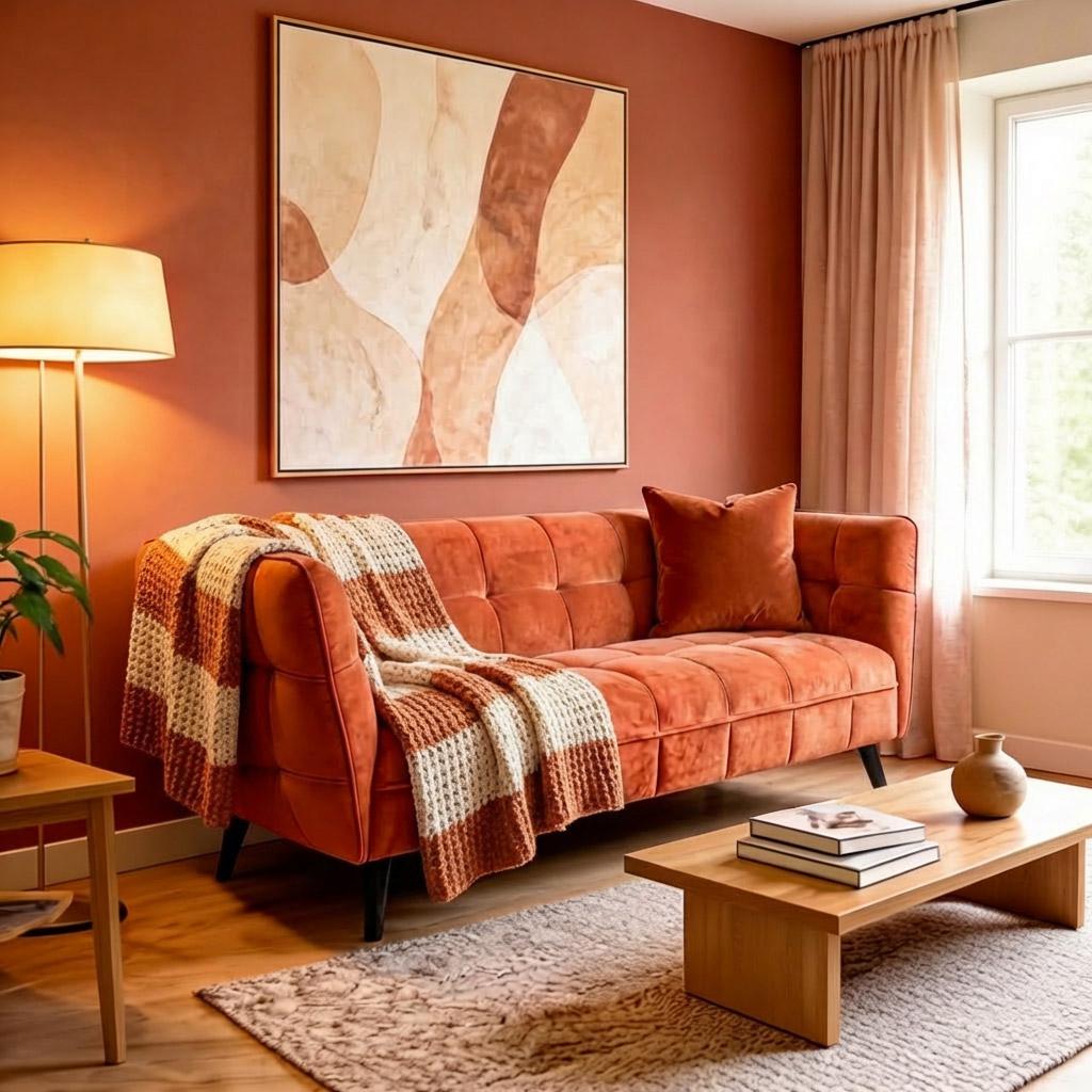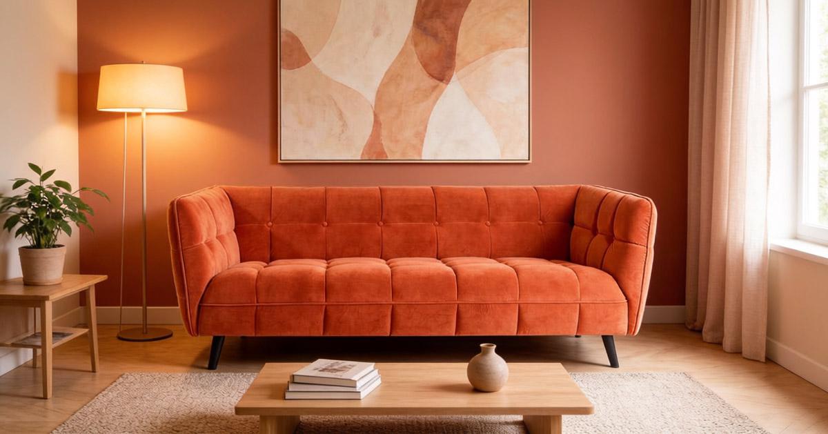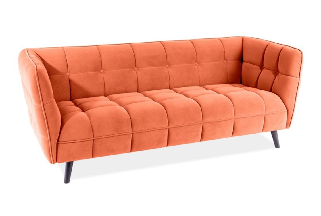 : ткань / Вес, кг: 55 / Высота (см): 78 / Гарантия, мес.: 12 / Глубина (см): 85 / Глубина сиденья (см): 60 / Количество коробок: 1 / Материал каркаса: дерево / Материал сидения: велюр / Необходимость сборки: да / Размер упаковки 1: 0,69/2,04/0,88 / Страна производитель: Польша / Цвет: оранжевый / Ширина (см): 200