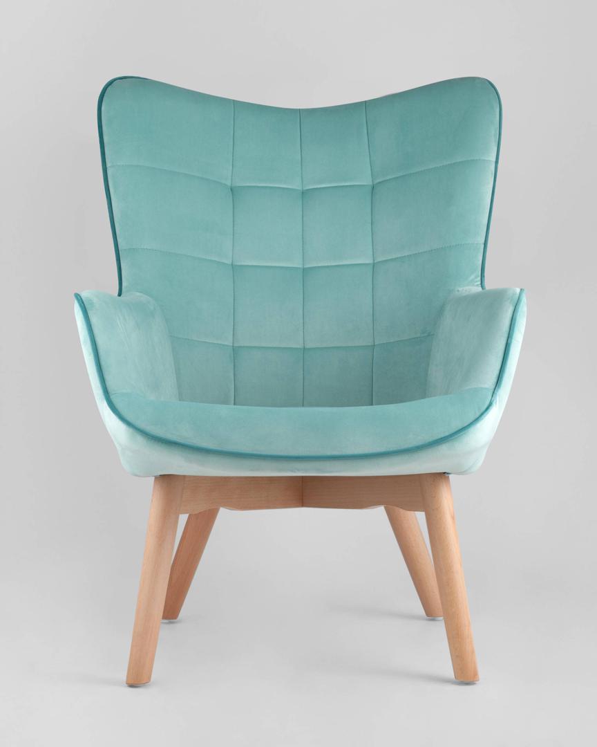 Кресло Манго мятное обивка вельвет с деревянными ножками
