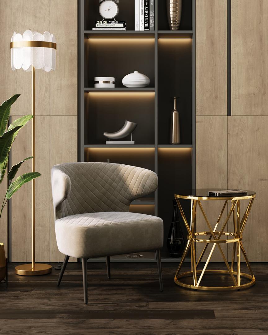 Кресло лаунж Royal велюр серо-бежевый ножки металл