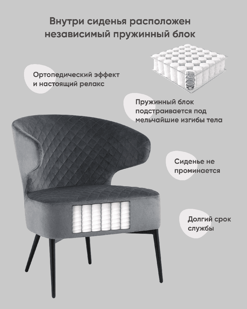 Наполнитель сиденья - ППУ, фанера, независимый пружинный блок «Pocket Spring»
