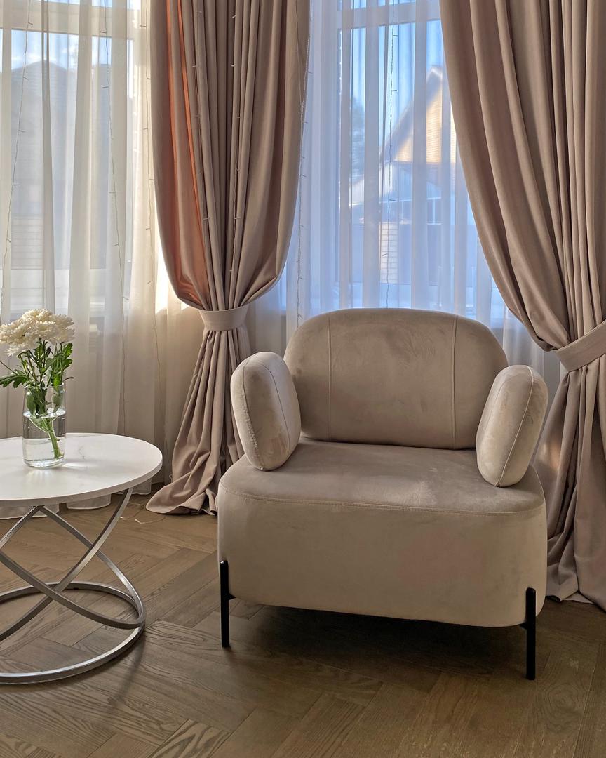 Кресло Кэнди с подлокотниками велюр серо-бежевый ножки металл