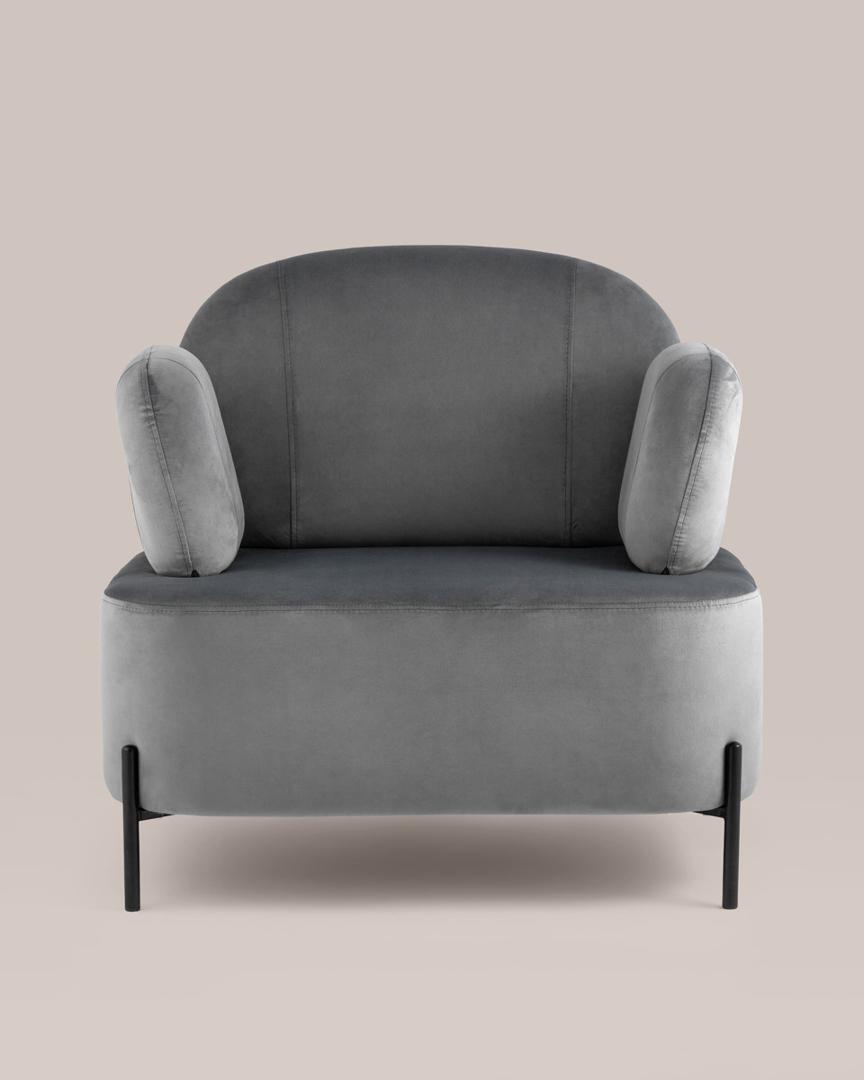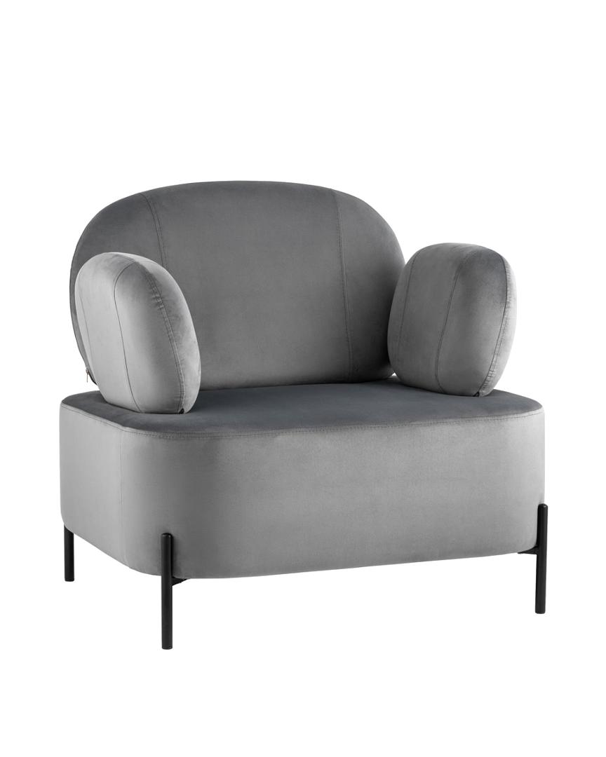 Кресло Кэнди с подлокотниками велюр серый ножки металл