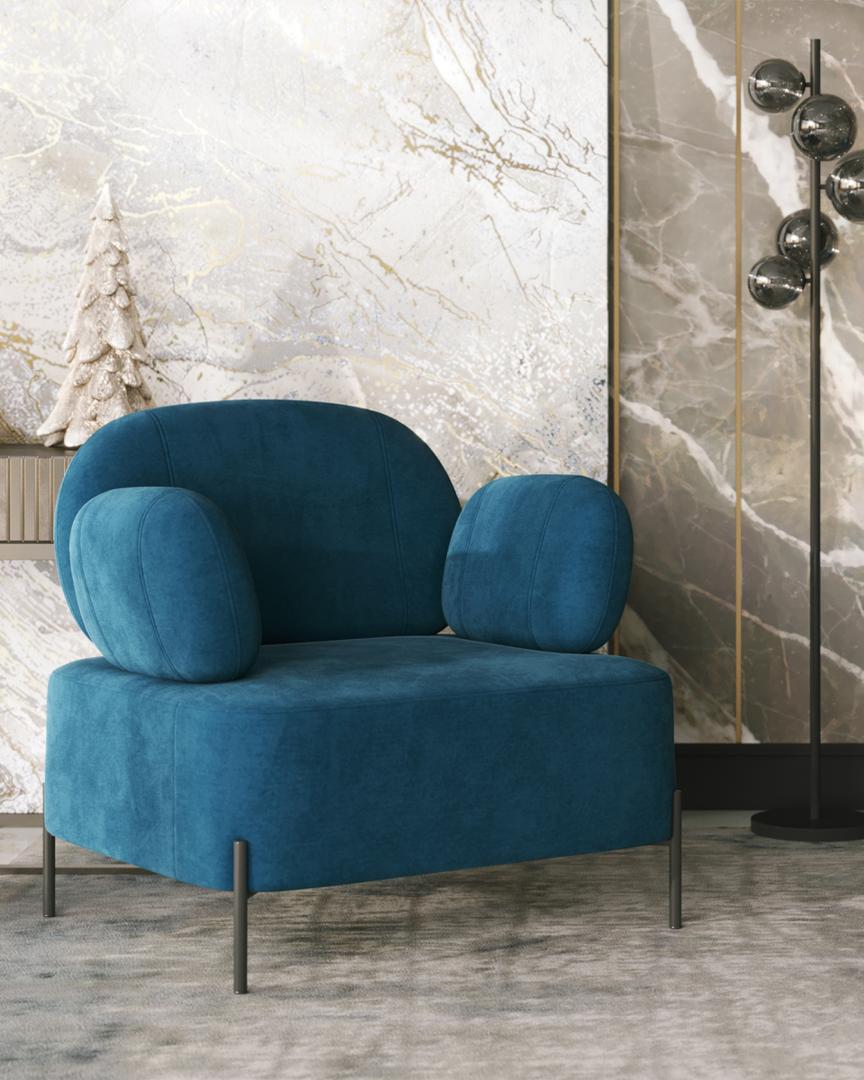 Кресло Кэнди с подлокотниками велюр синий
