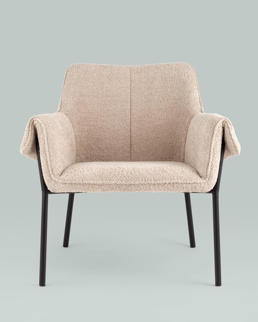 Кресло с подлокотниками Бесс альпака бежевый ножки металл черные