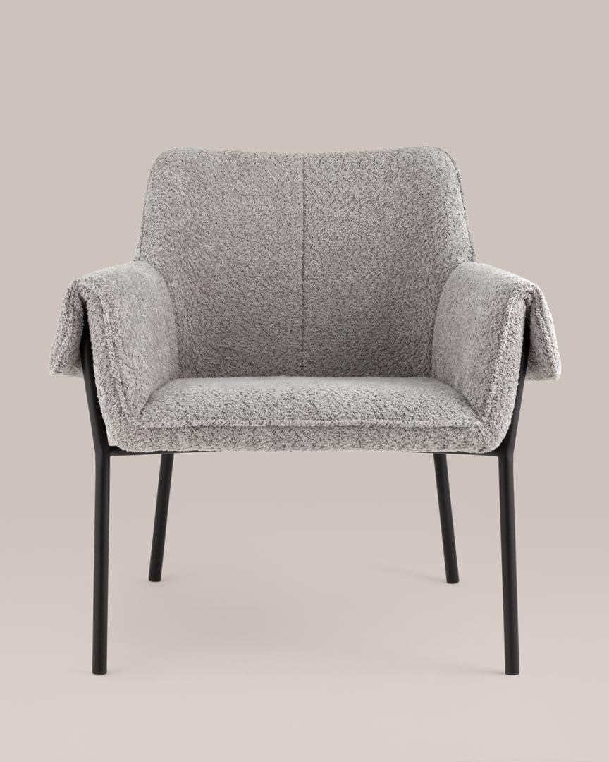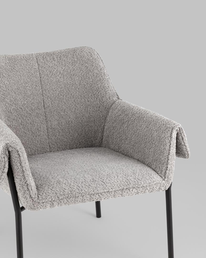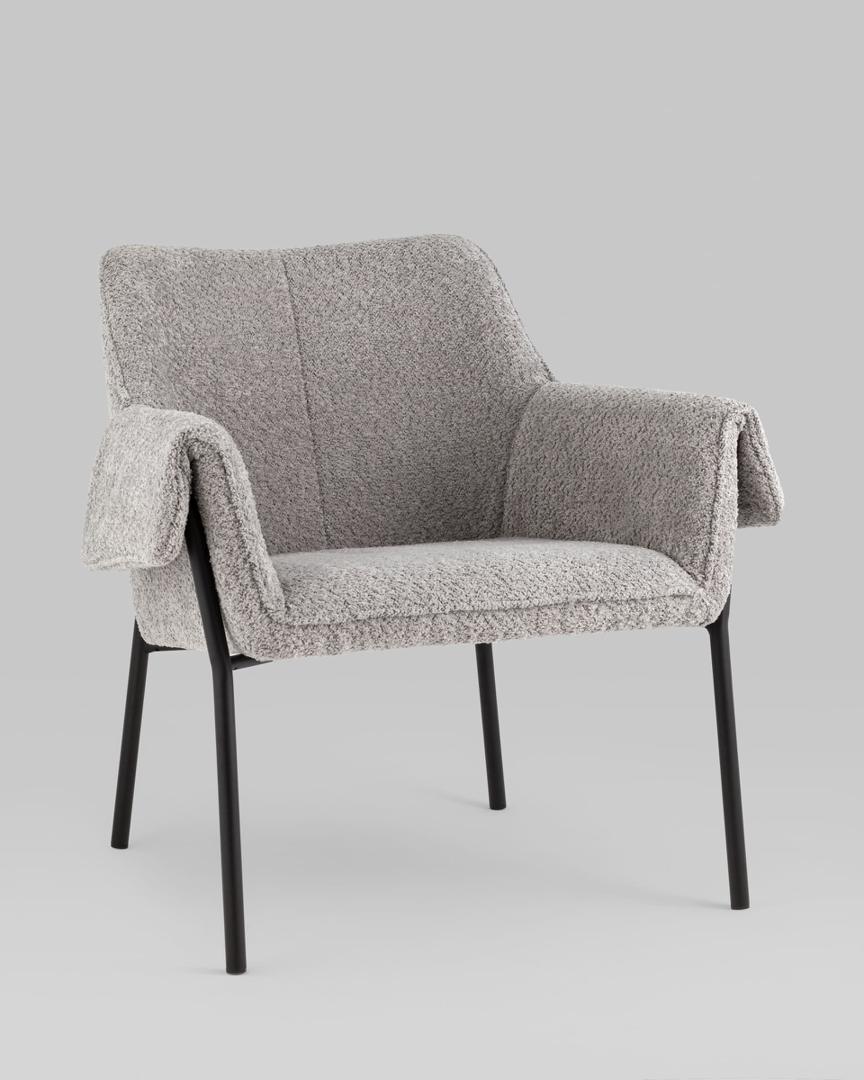 Кресло с подлокотниками Бесс альпака серый ножки металл черные