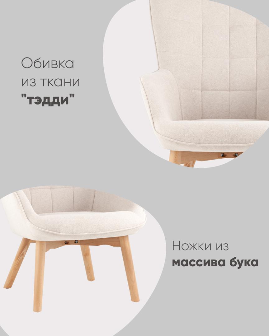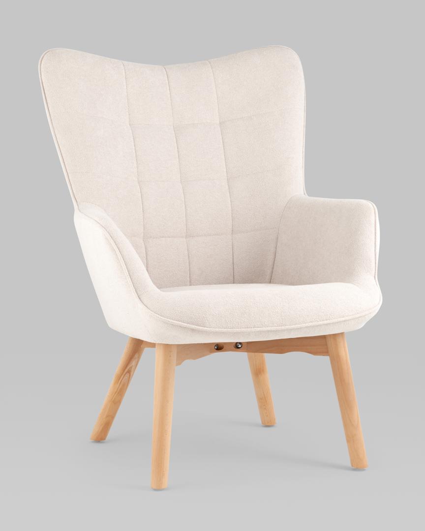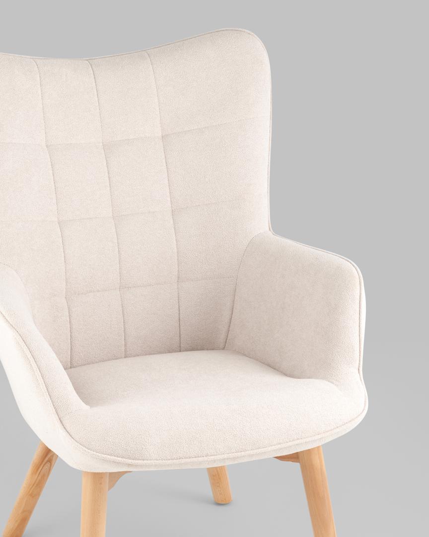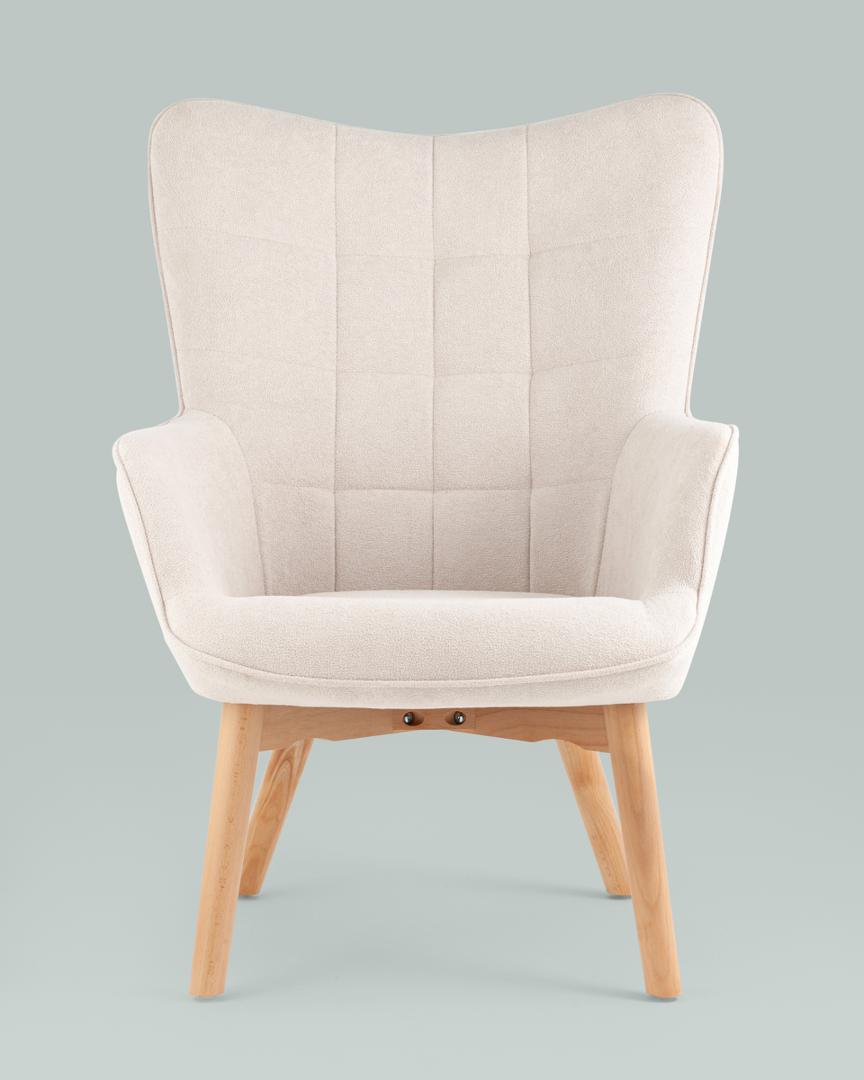 Кресло Манго белое, обивка ткань, с деревянными ножками